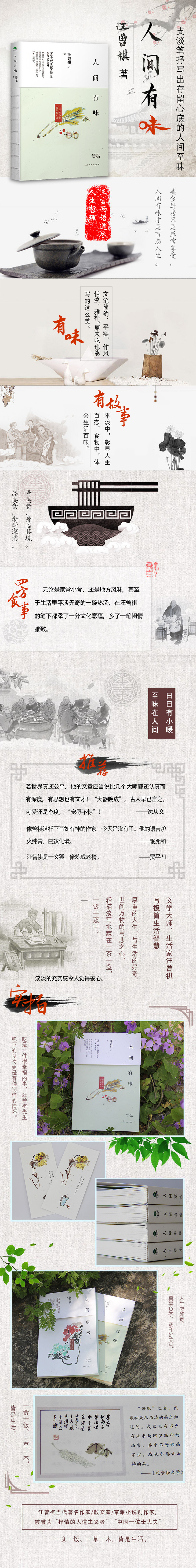 2.《人间有味》采用典雅裸脊装帧,书中囊括了汪曾祺先生自己的字画,同时也选用了作者喜爱的名画大家石涛、虚谷、齐白石等人作品。