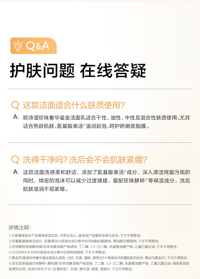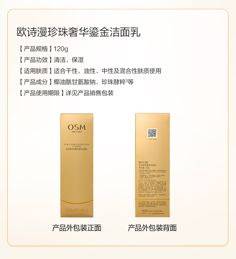 欧诗漫珍珠奢华鎏金洁面乳120g 深度清洁 洗感舒适