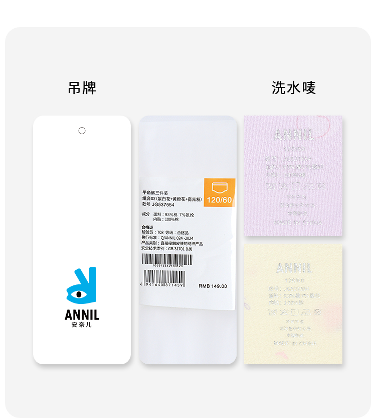 女童平角裤三件装秋季新款安奈儿童装JG537554