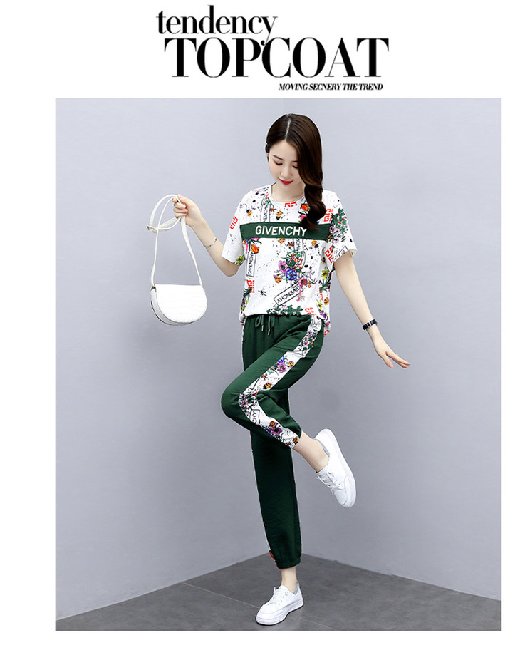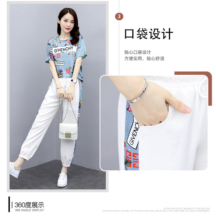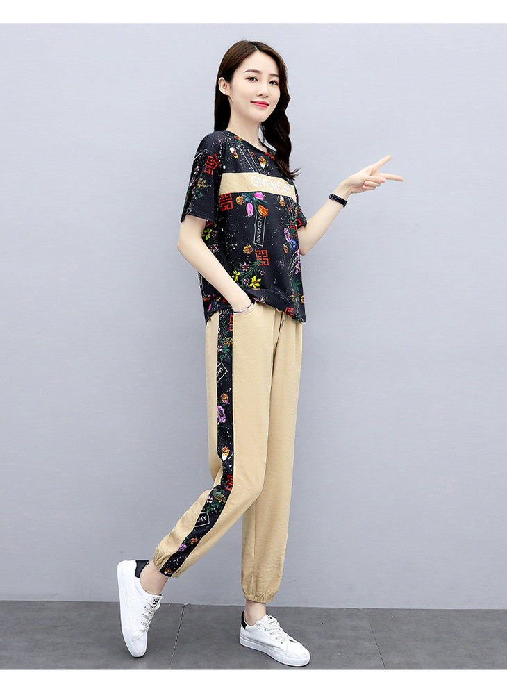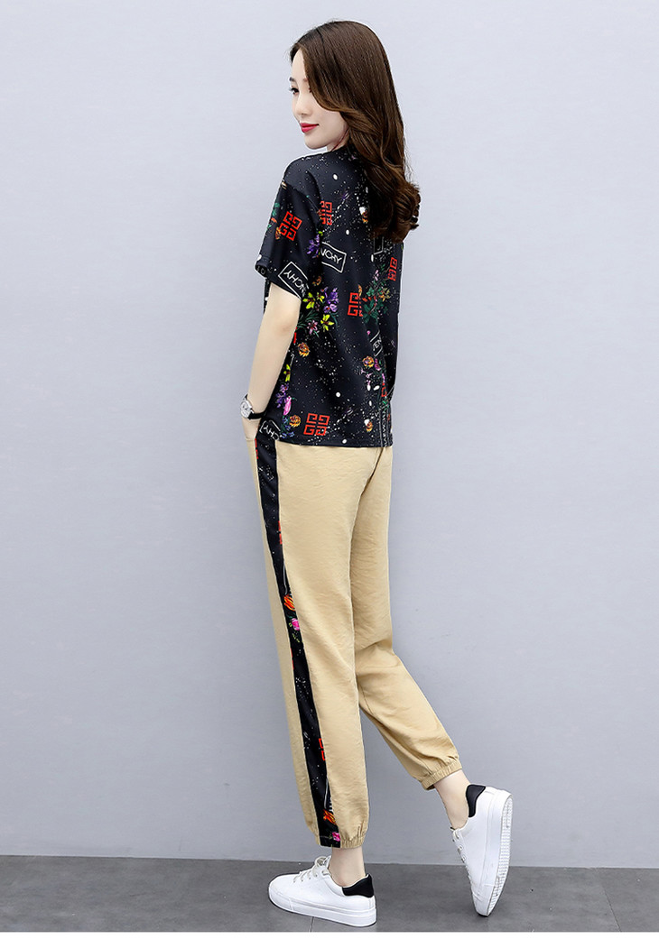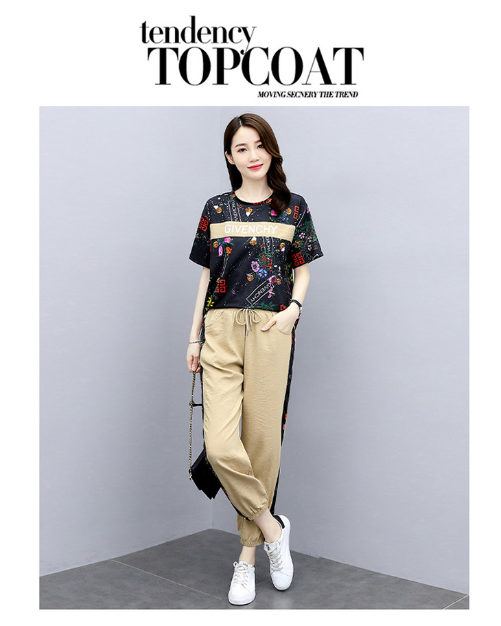HR-GJC2905P105时尚休闲,气质印花上衣+小脚休闲裤两件套