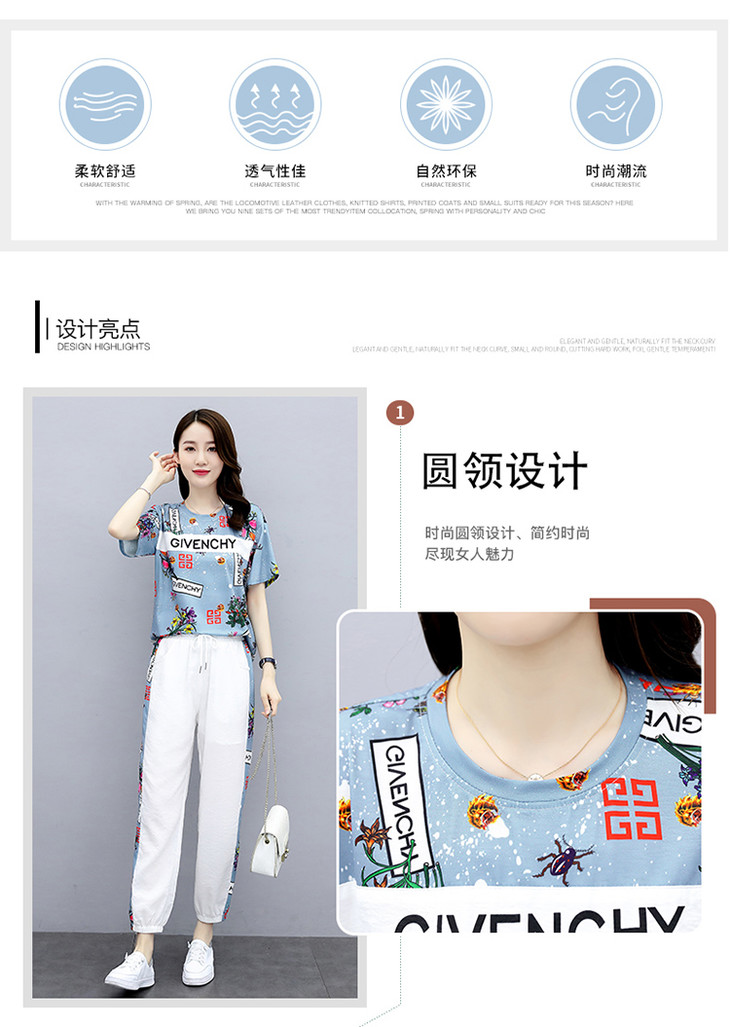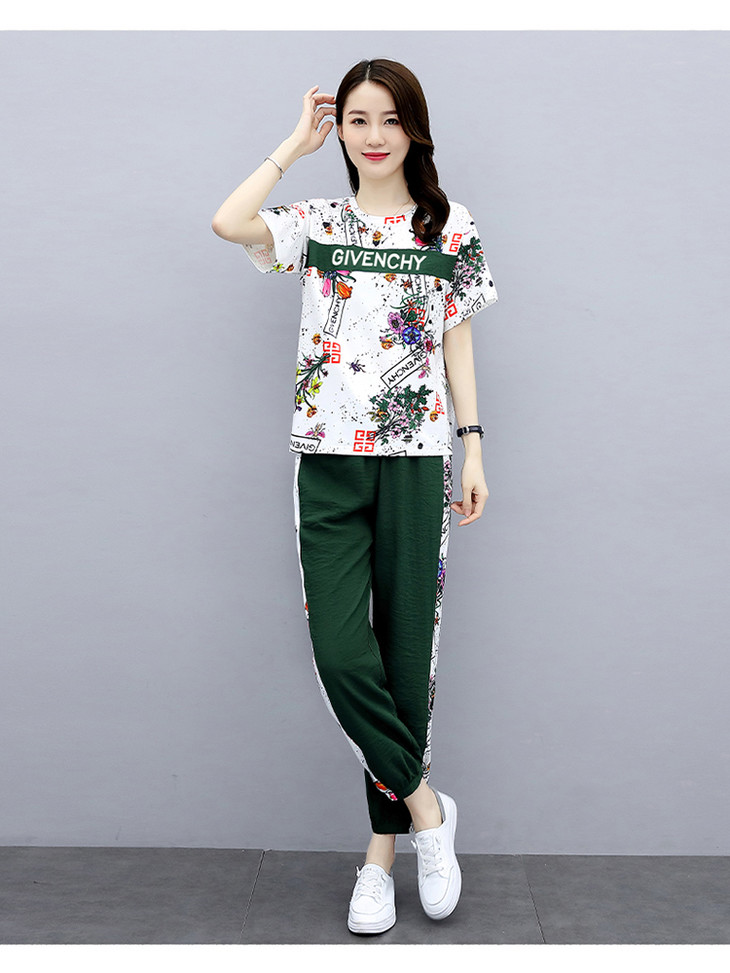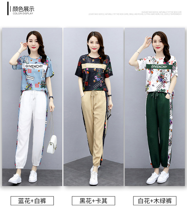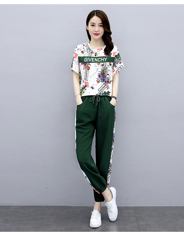 HR-GJC2905P105时尚休闲,气质印花上衣+小脚休闲裤两件套