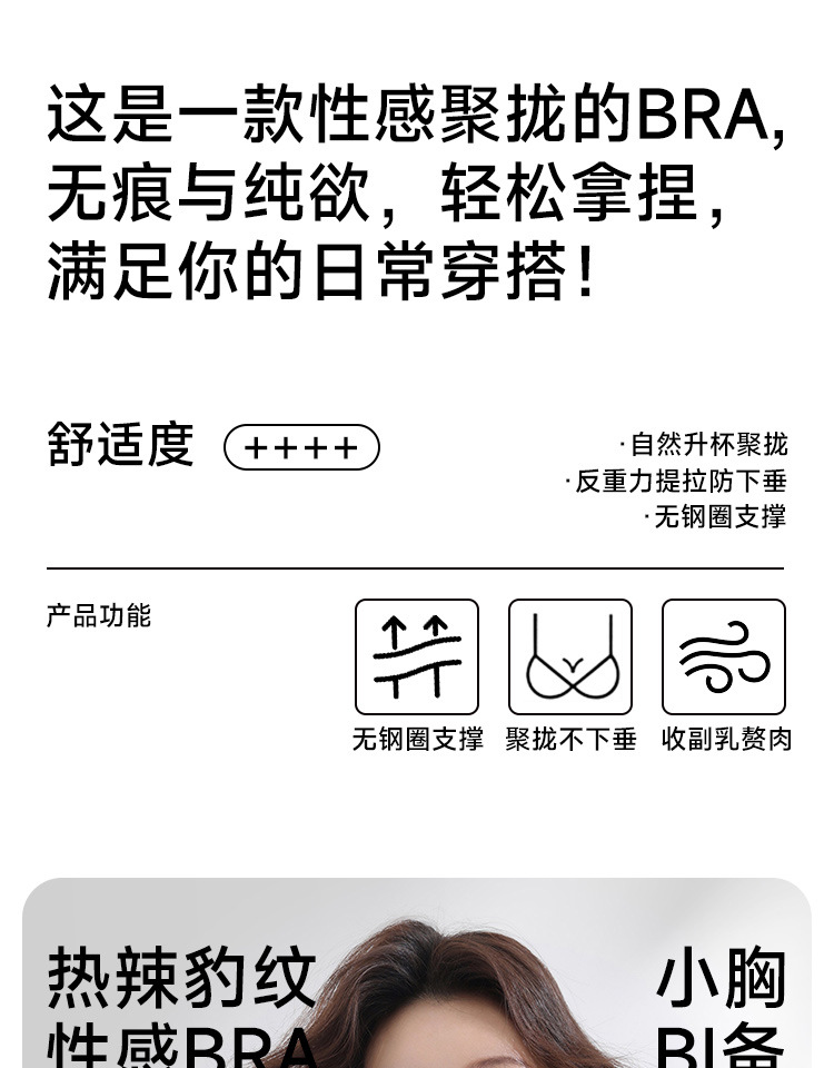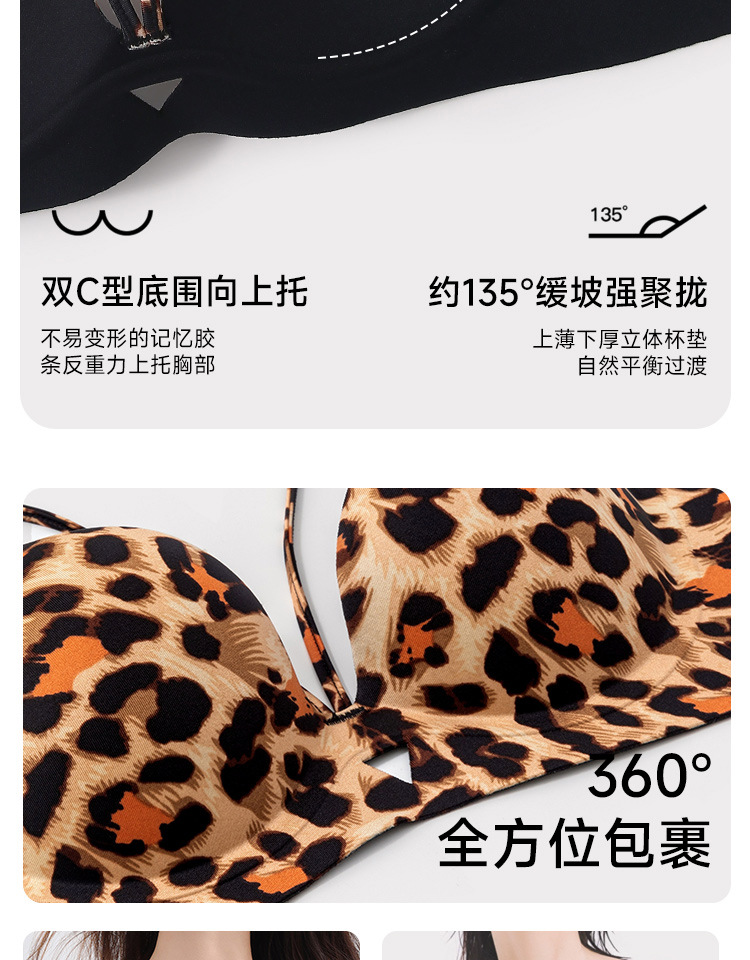 雀说原版性感豹纹内衣女聚拢小胸显大无痕高级感防下垂收副乳文胸AL2315