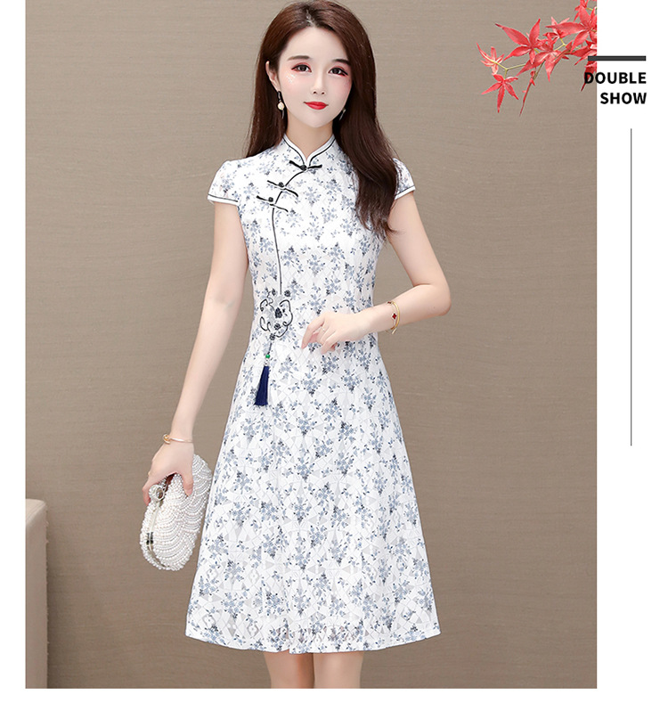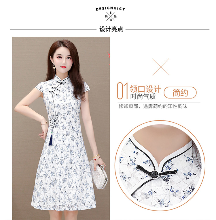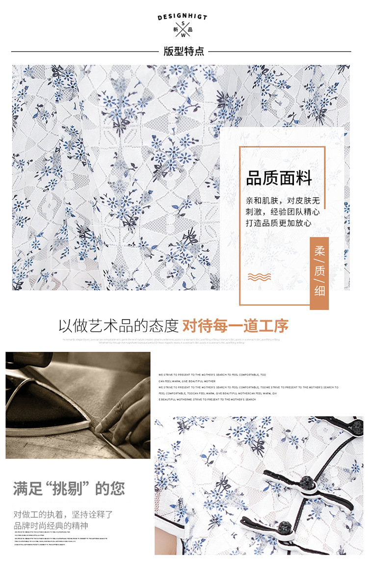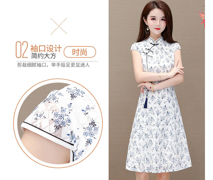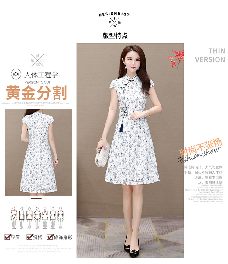 YWE-N908气质旗袍裙2020夏新款修身立领印花中长款