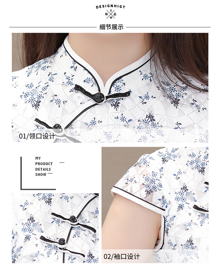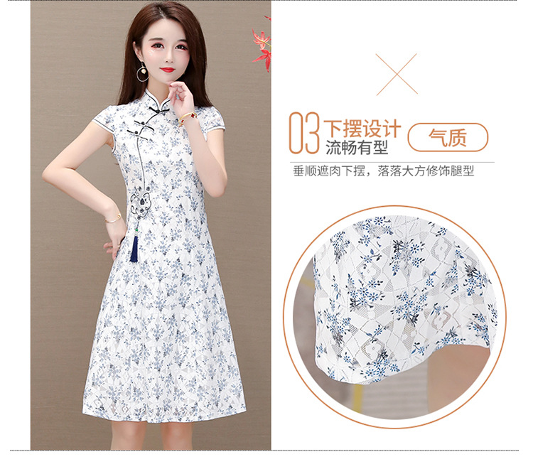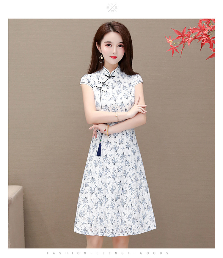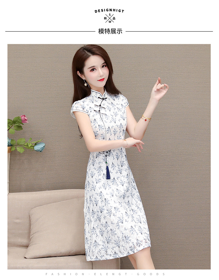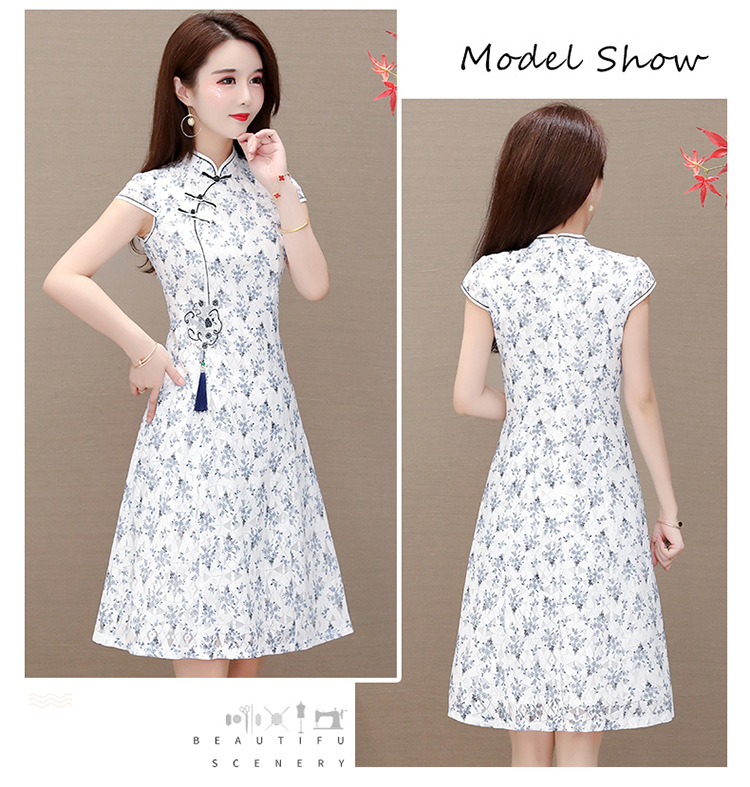 YWE-N908气质旗袍裙2020夏新款修身立领印花中长款