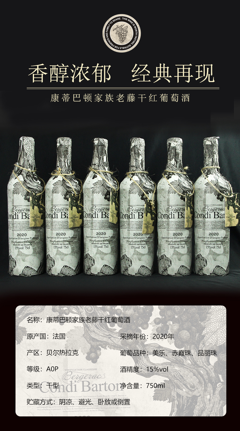 法国Condi Barton康蒂巴顿·AOP级红葡萄酒 6支/箱