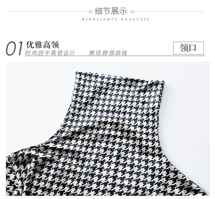 MZ-MZ7499秋冬新款百搭修身千鸟格金丝绒打底衫