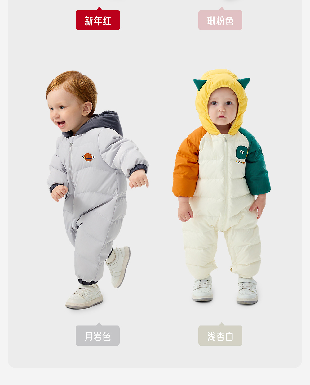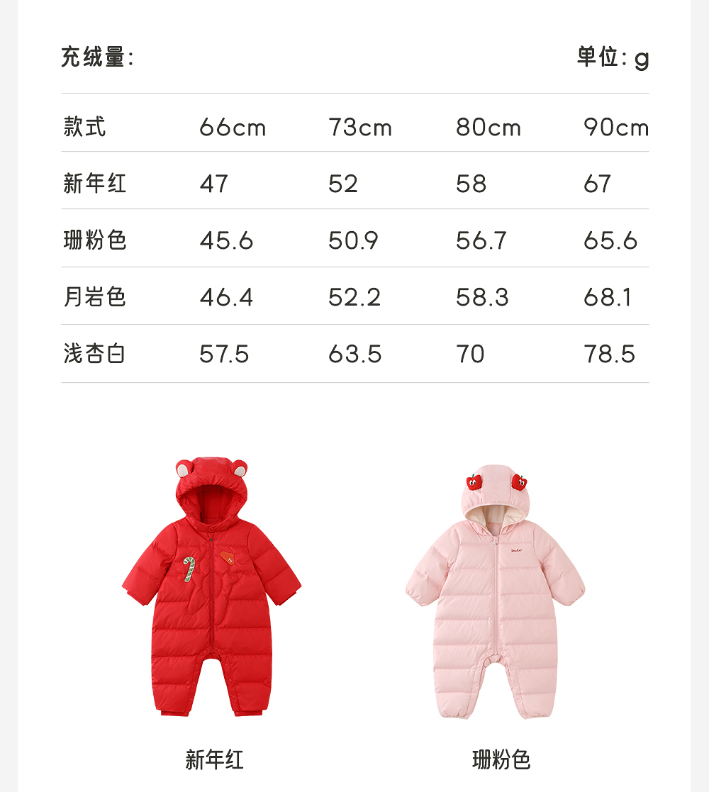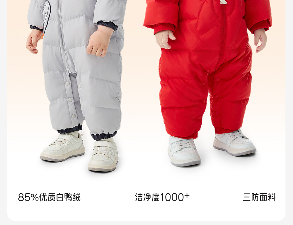 英氏婴儿保暖羽绒服2025冬季新款新年红色外出服宝宝长袖连体衣超韧绒