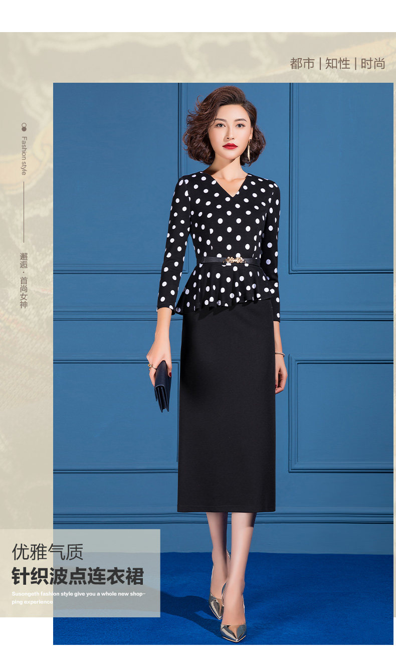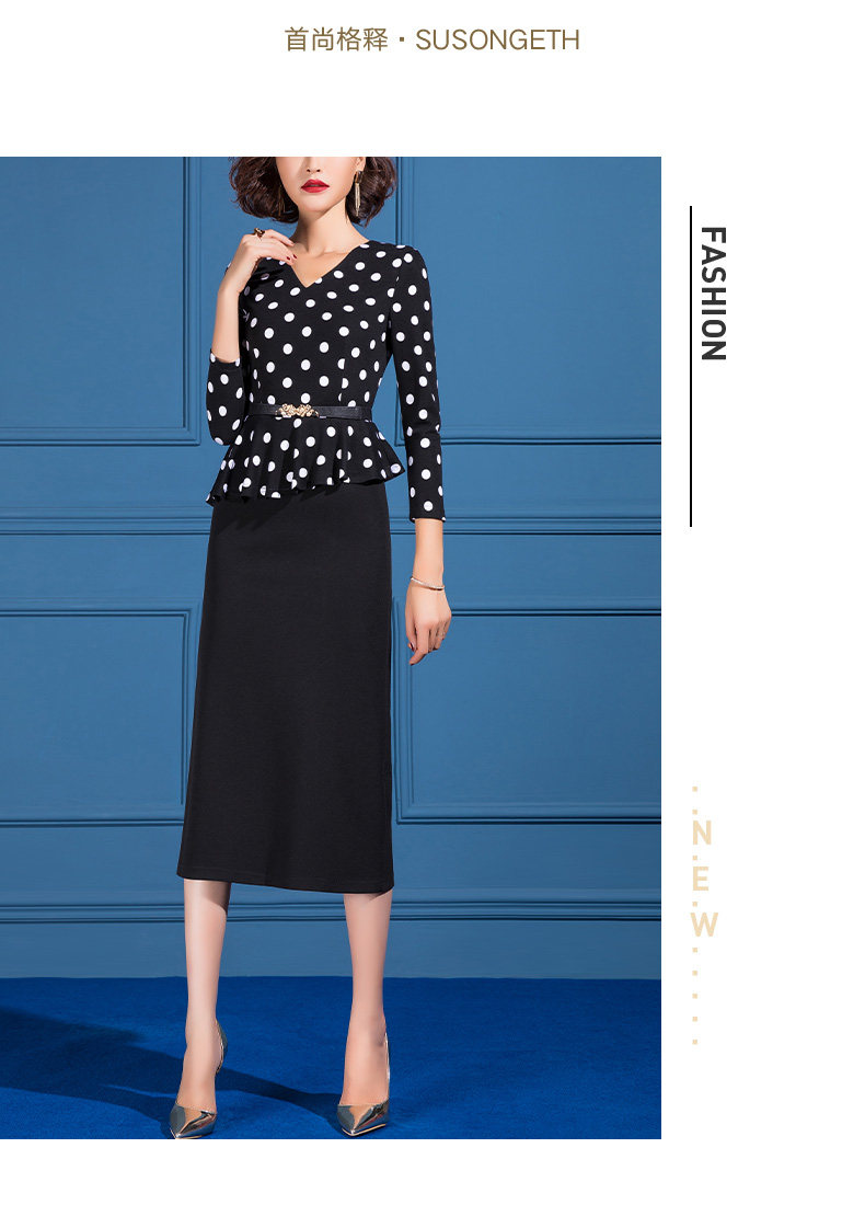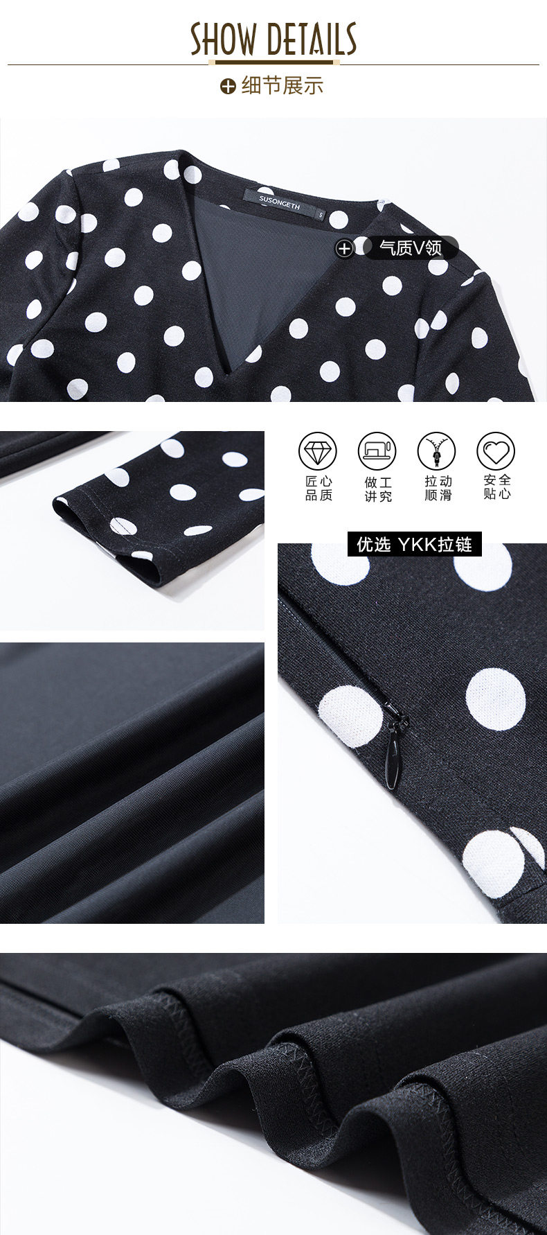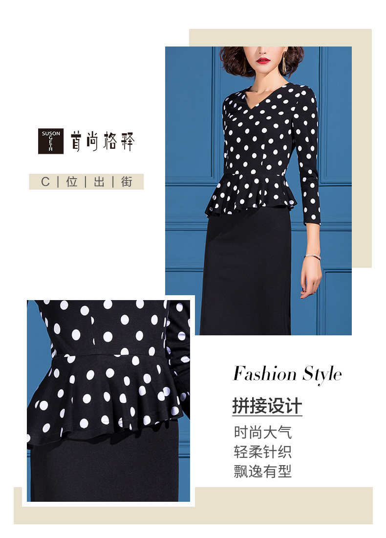 SSGS-S799新款秋收腰显瘦V领OL优雅气质黑色拼接A字针织连衣裙