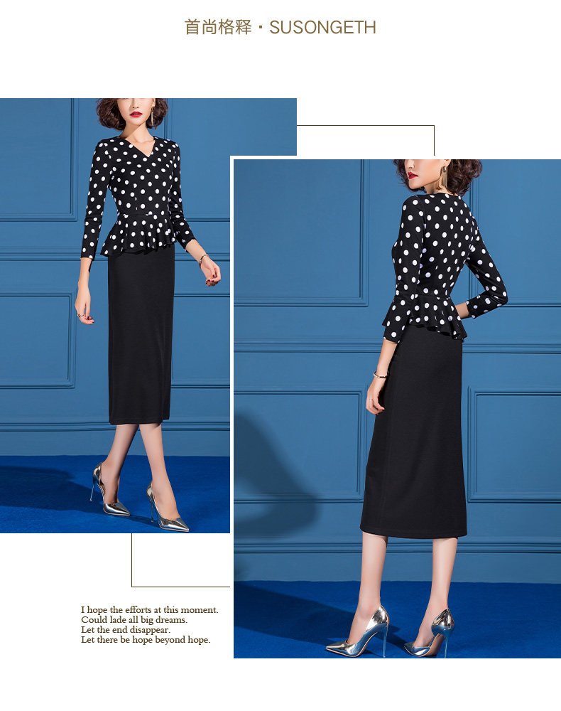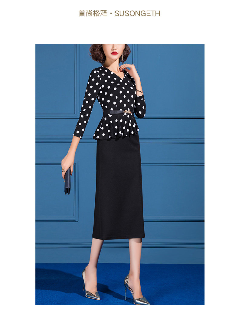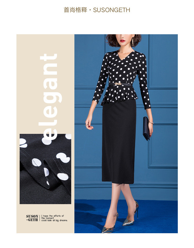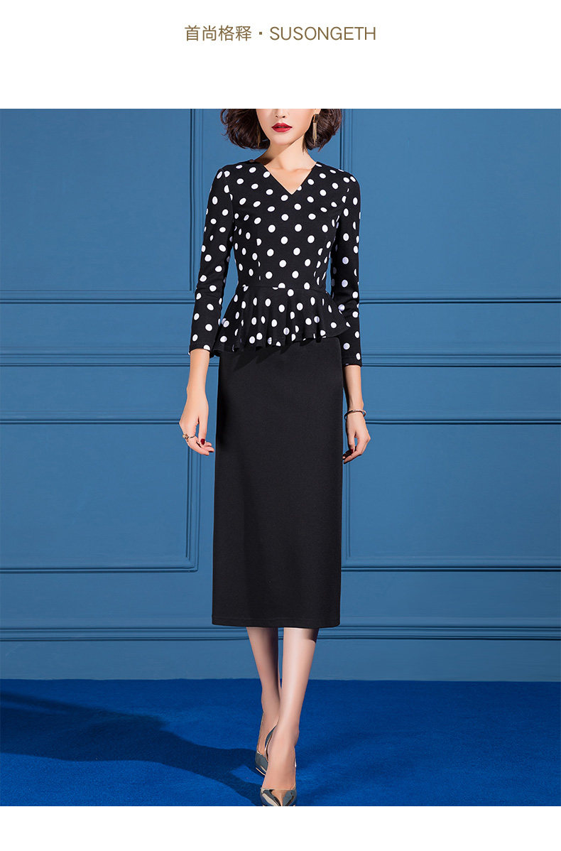 SSGS-S799新款秋收腰显瘦V领OL优雅气质黑色拼接A字针织连衣裙