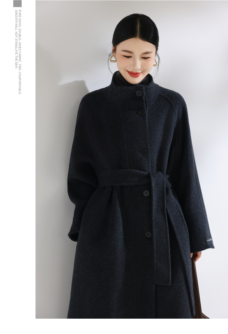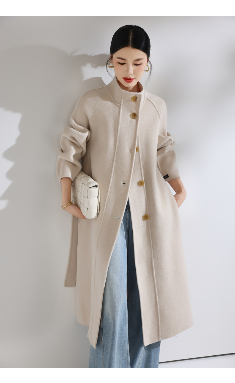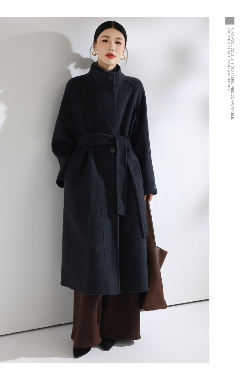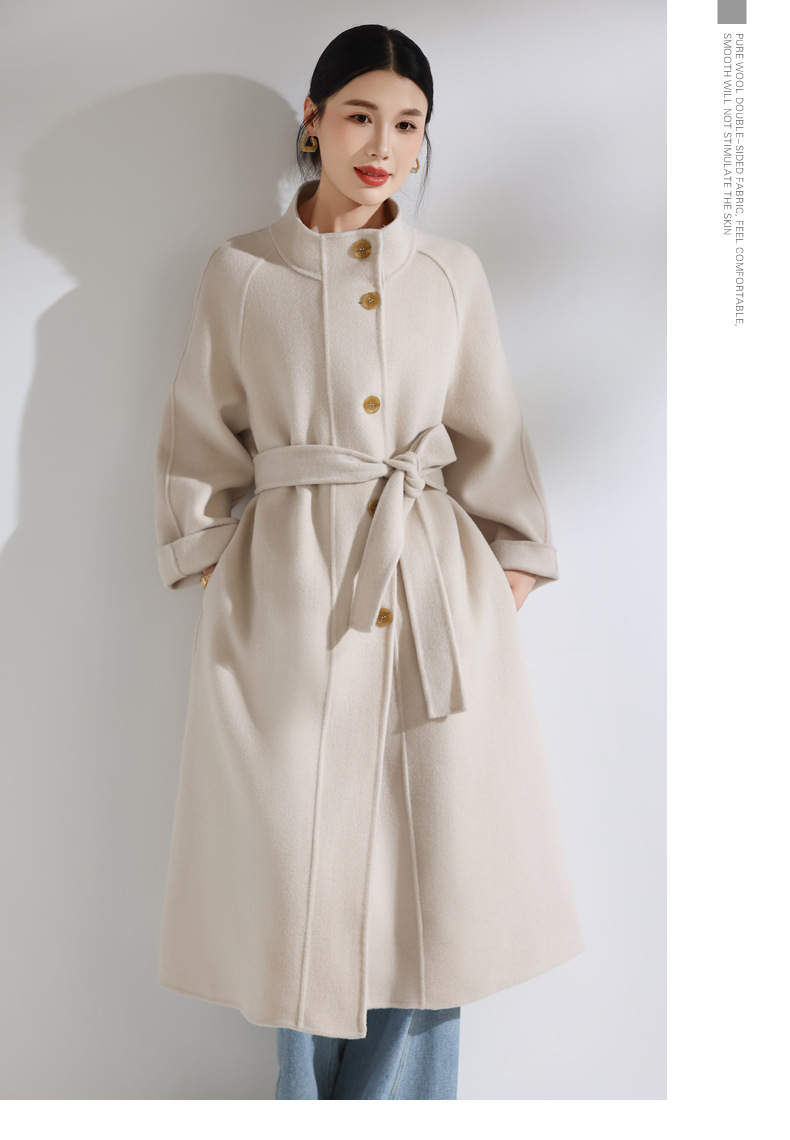 「自」全新升级【铂金会员588/天猫799/差价211】(03101)洛诗琳新款双面羊毛大衣2025秋冬立领加长款腰带毛呢外套