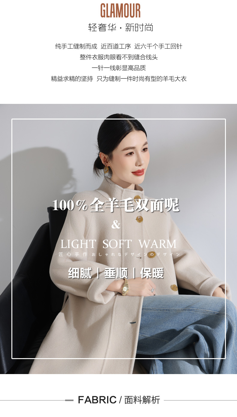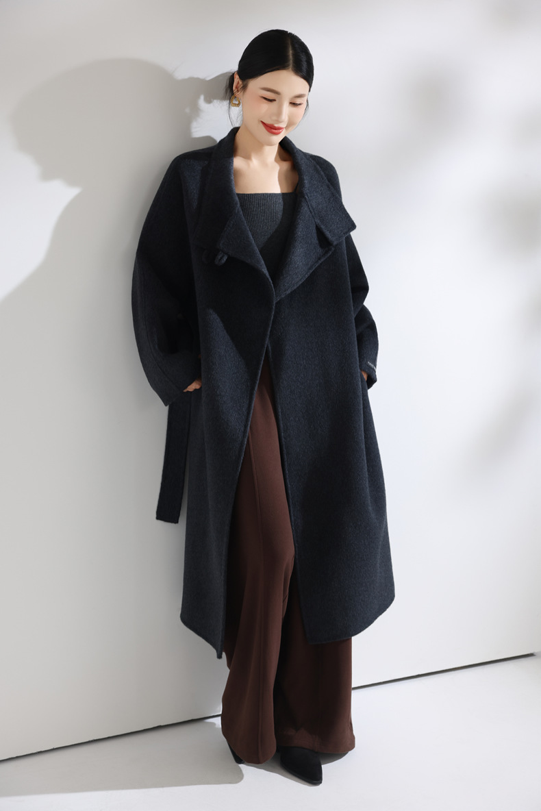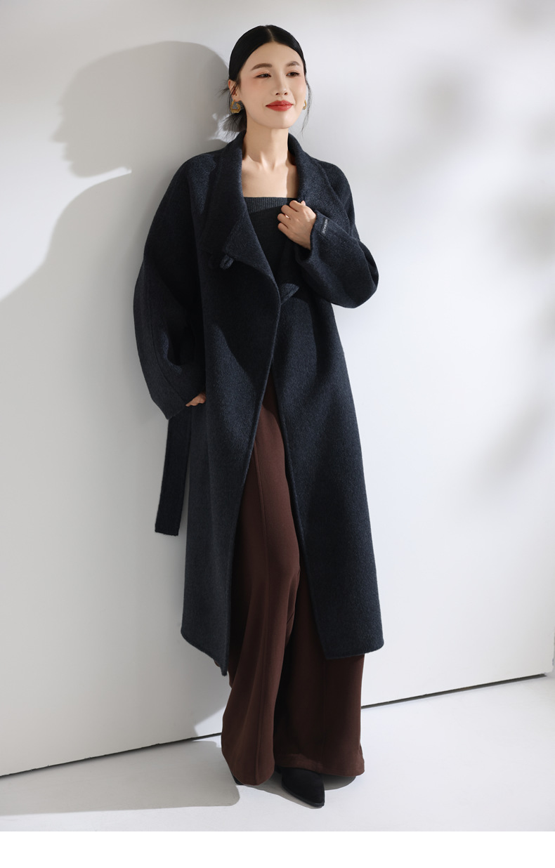 「自」全新升级【铂金会员588/天猫799/差价211】(03101)洛诗琳新款双面羊毛大衣2025秋冬立领加长款腰带毛呢外套