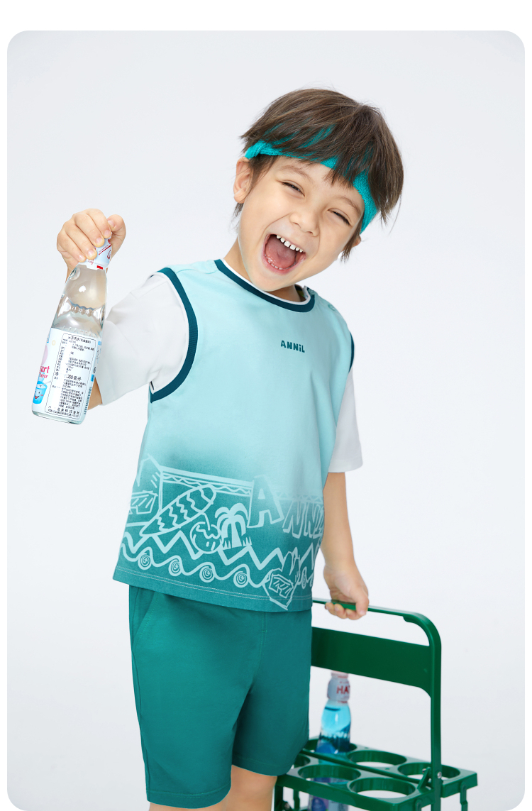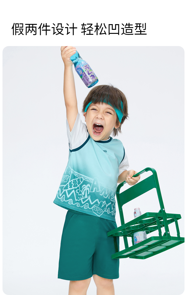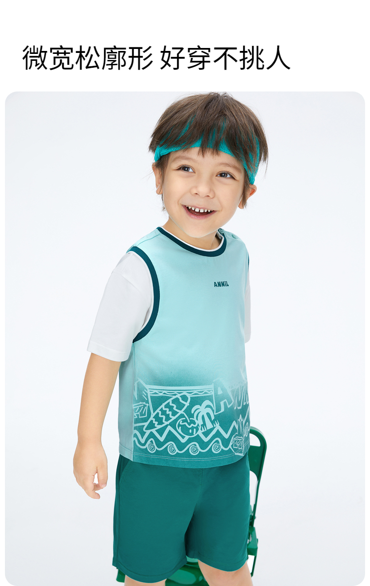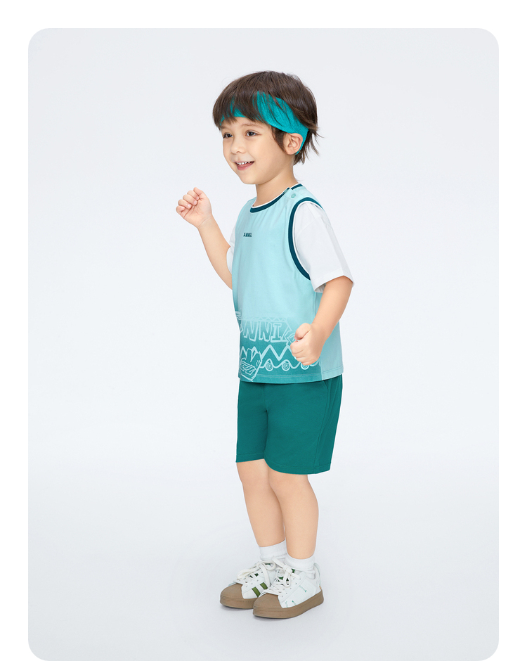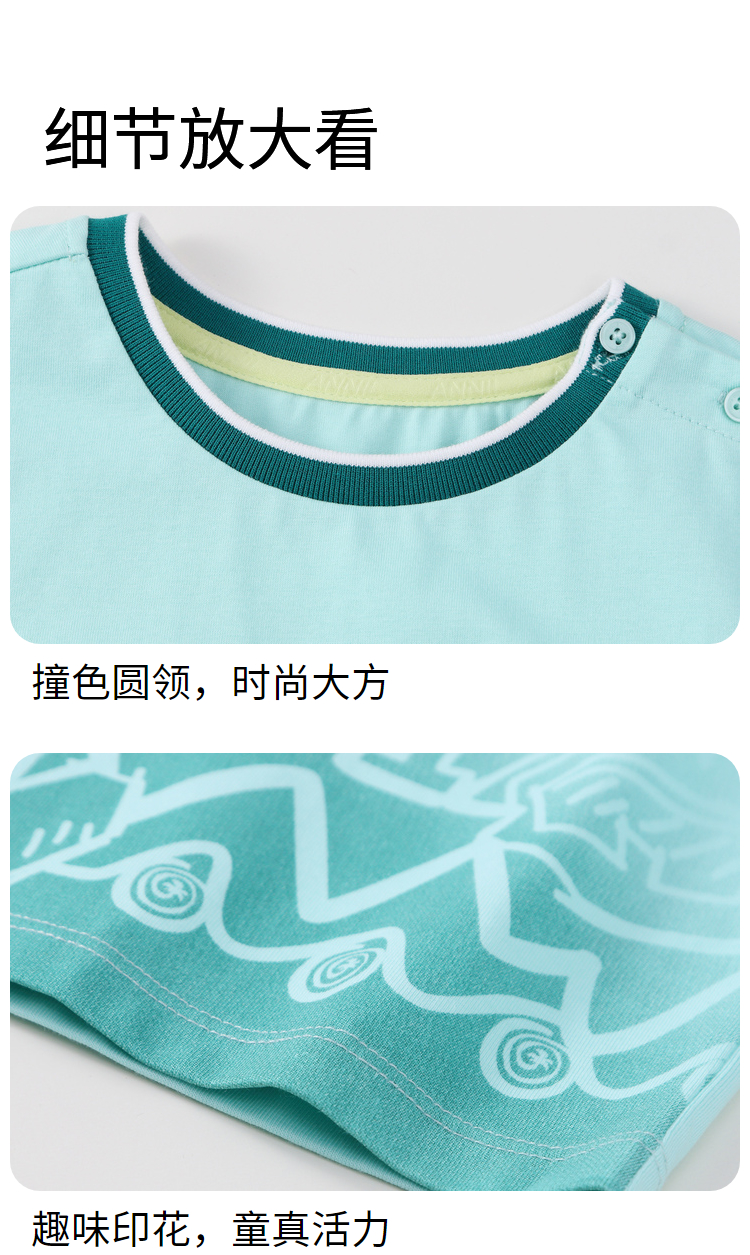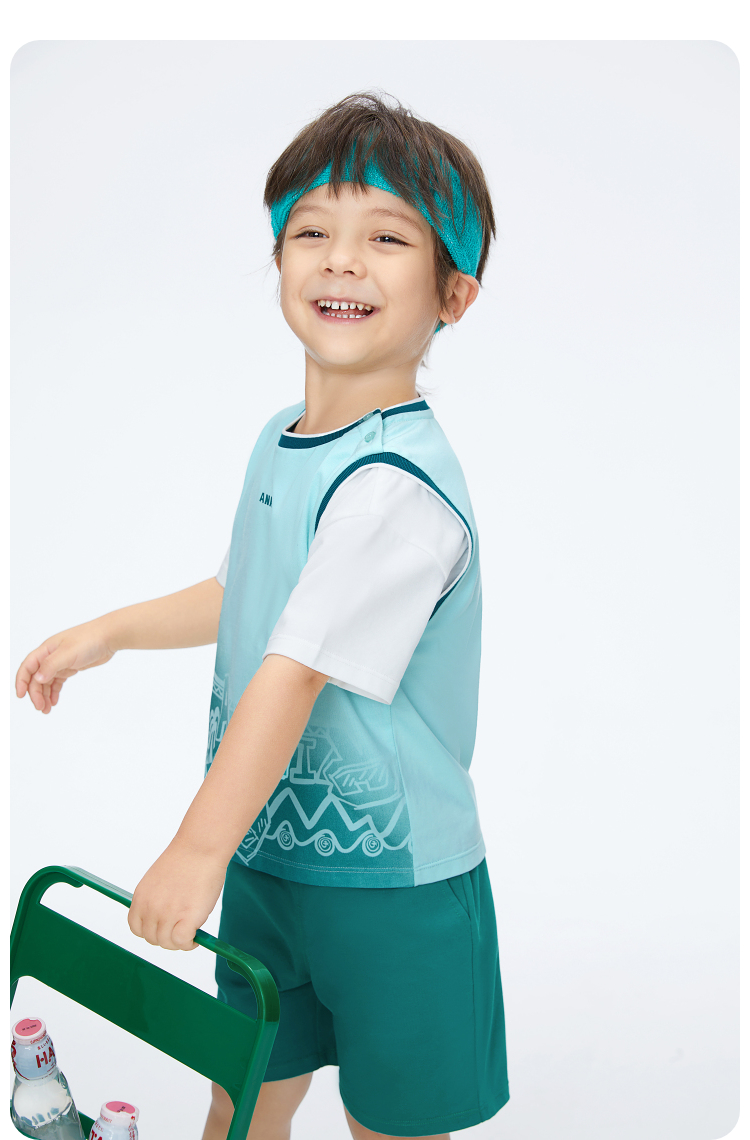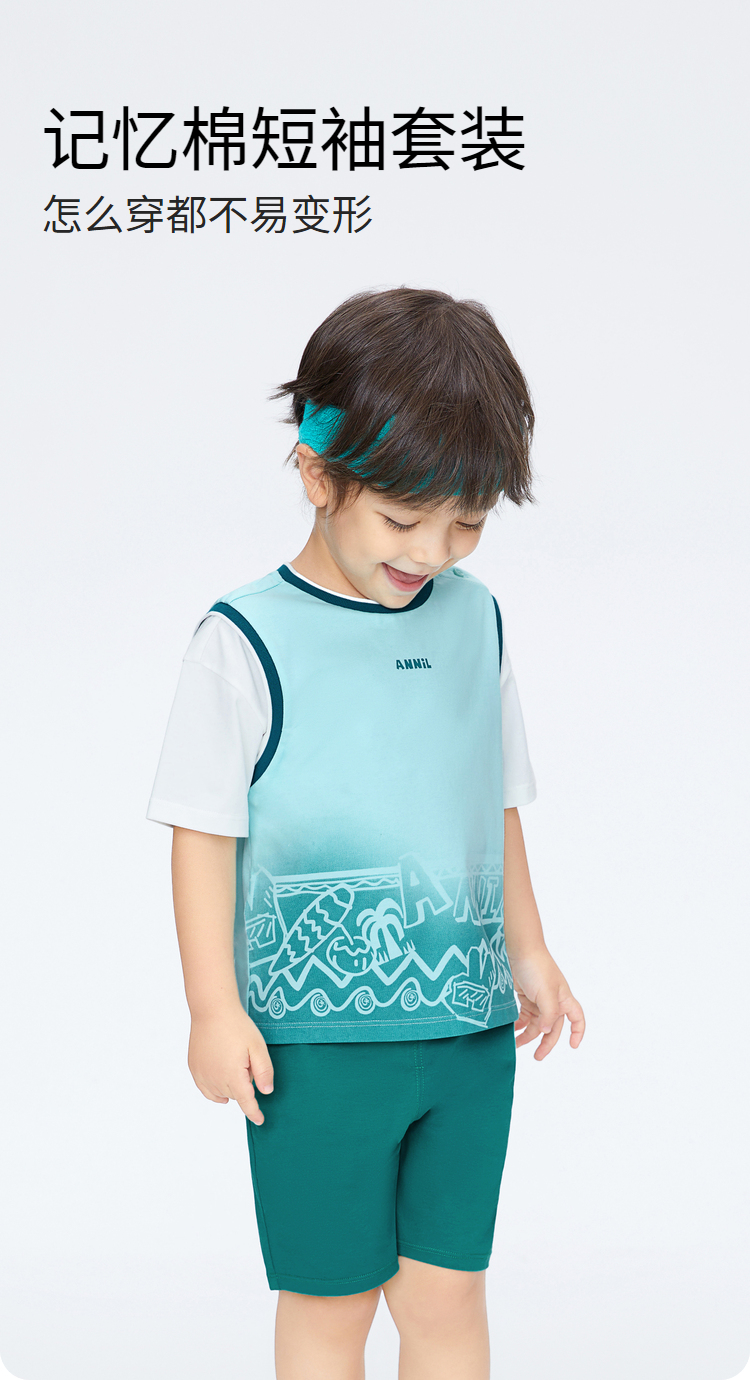 男童弹力短袖套装圆领两件套夏季新款安奈儿童装实体店同款XB421685