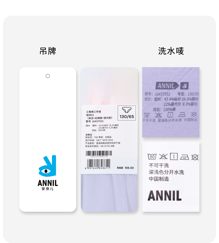 【7A级抗菌家居】【天然润肤】女童三角内裤三件装新款安奈儿童装实体店同款JG437552