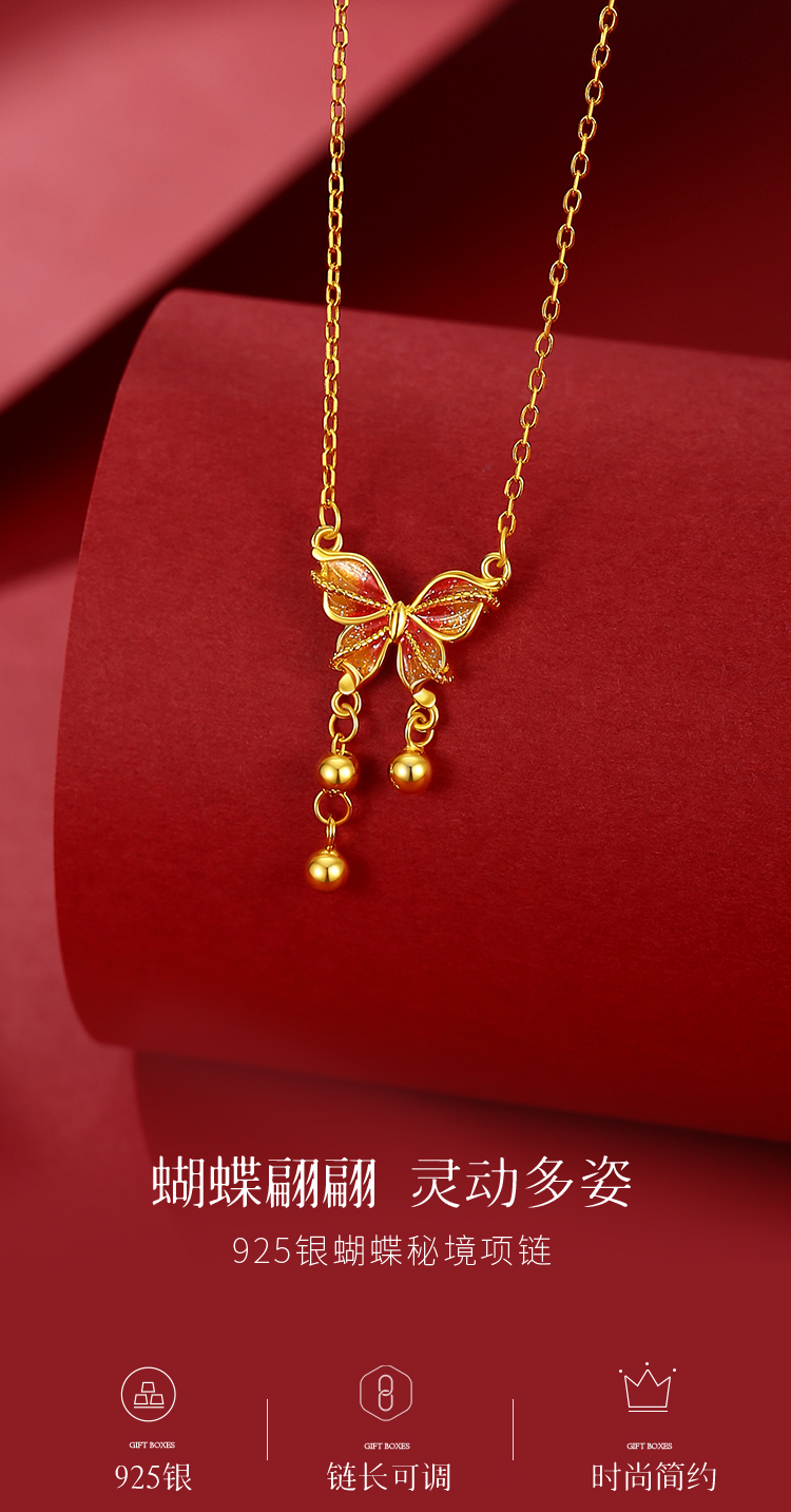 Winy925纯银蝴蝶秘境项链送女友闺蜜节日生日礼物