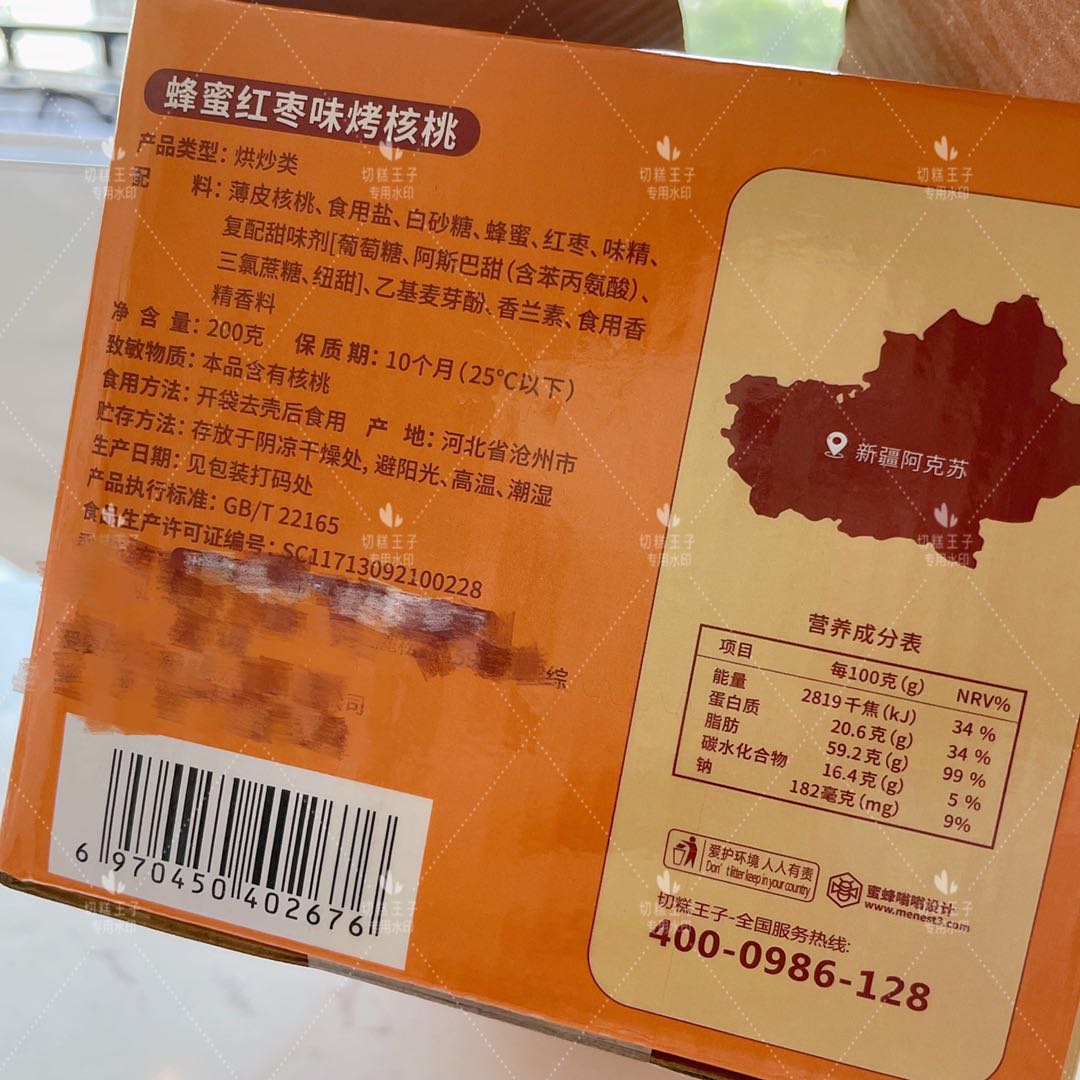 二,关于原料:只选用高配原料,新疆克苏185纸皮核桃,99%的开口率,一捏就碎,搭配天山蜂蜜+阿克苏红枣提取油,口感更好,不会有苦涩感,营养更高;