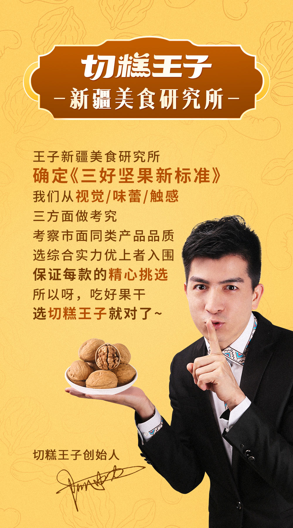 一,关于品牌:切糕王子,新疆美食专门家,7年专注高端坚果品牌,央视、湖南卫视、张卫健、胡海泉、杨坤、广东夫妇等各大主流媒体、明星、网红达人都在推荐;