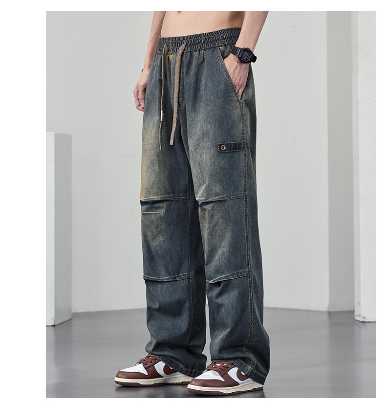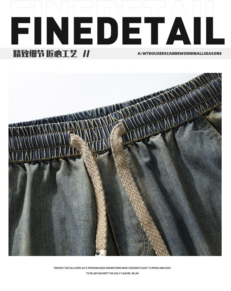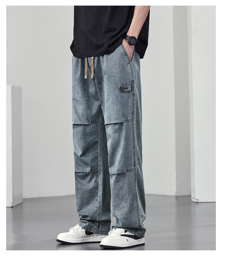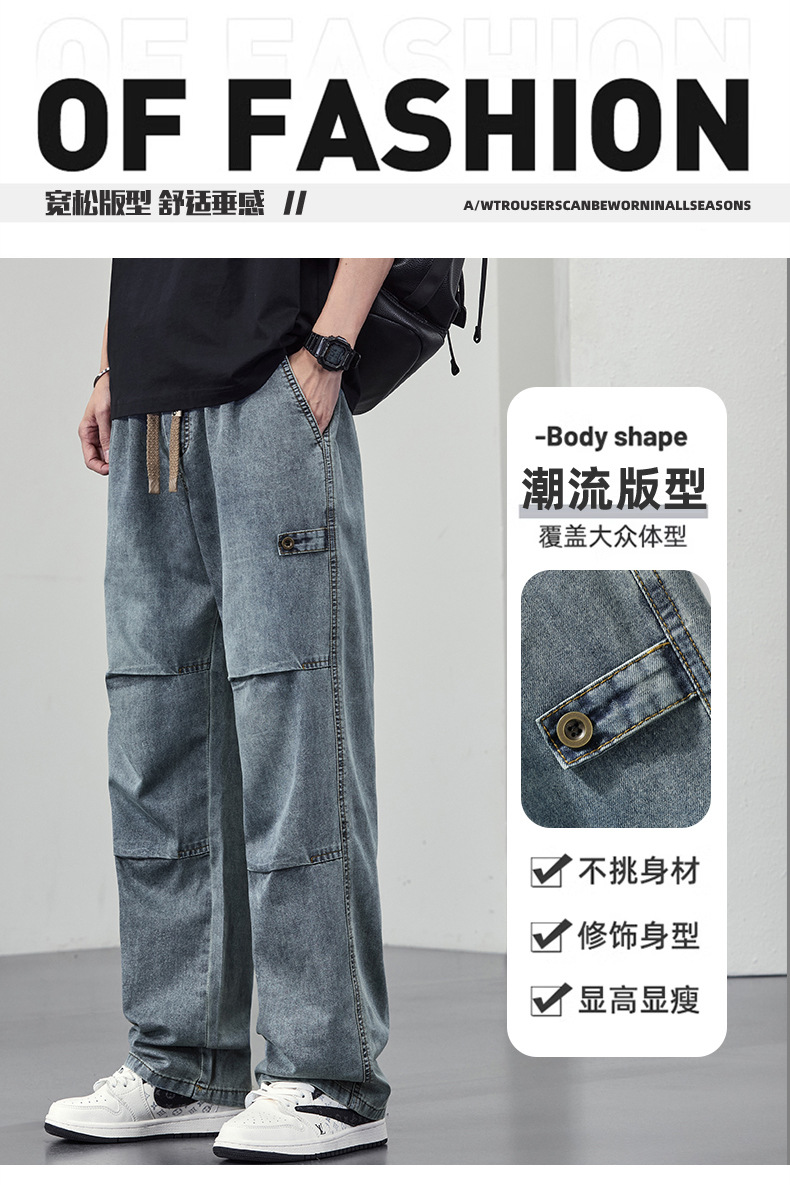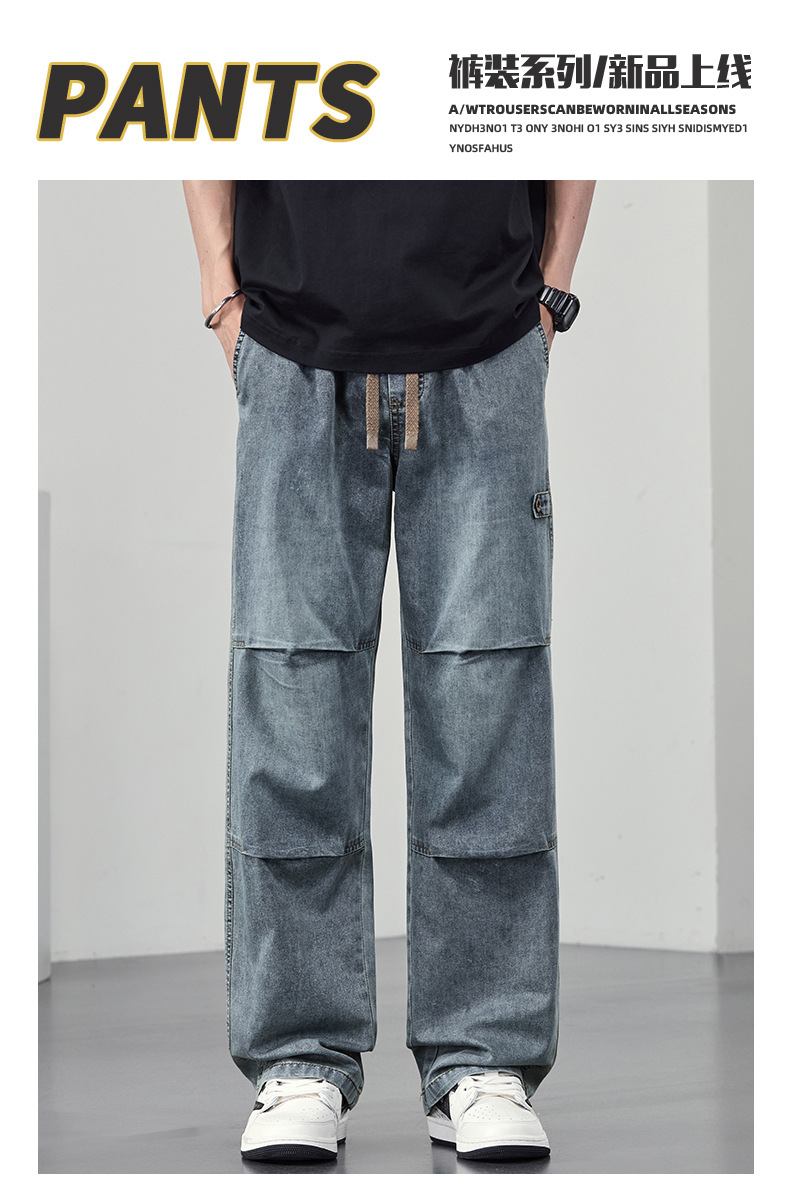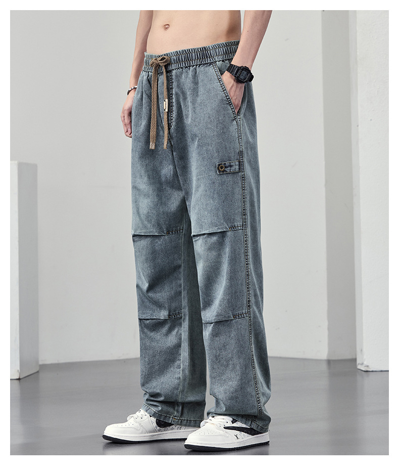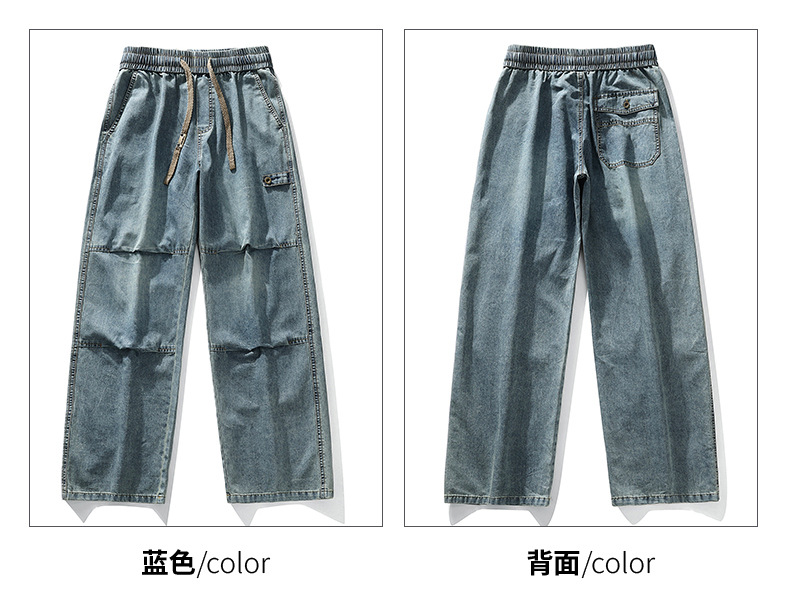 【DYF】大依优型大码男装休闲牛仔裤松紧腰运动宽松直筒休闲风长裤子