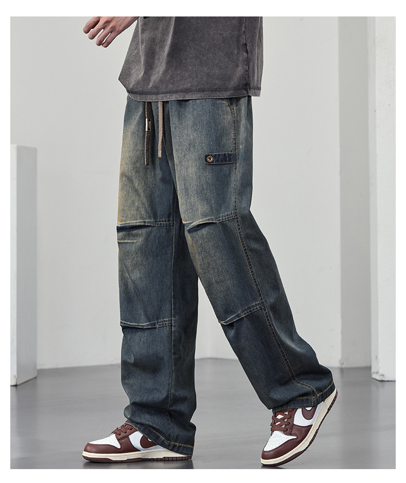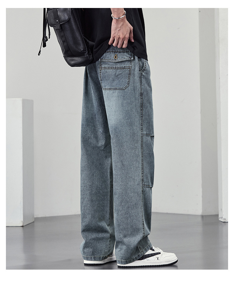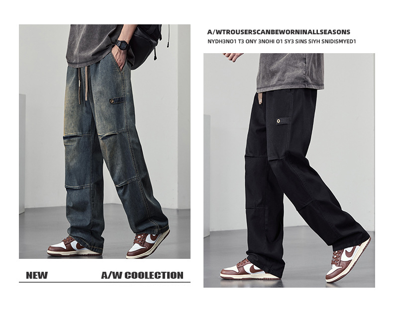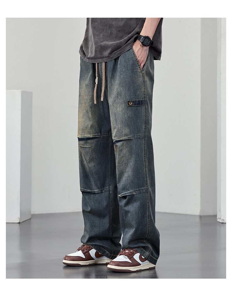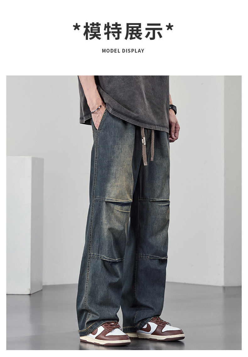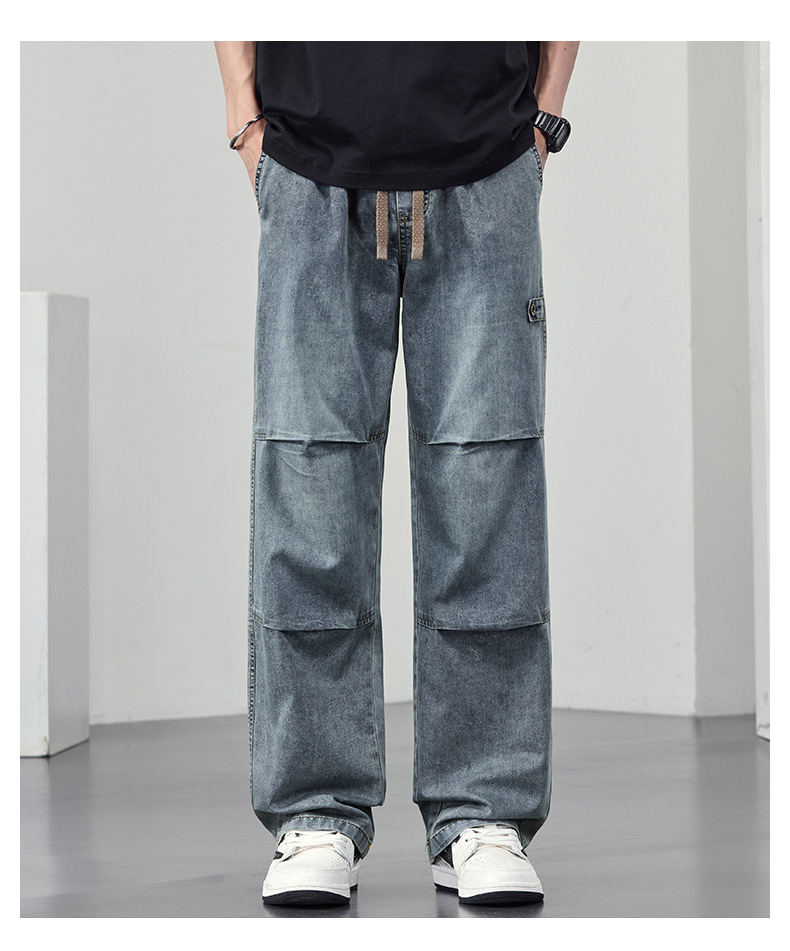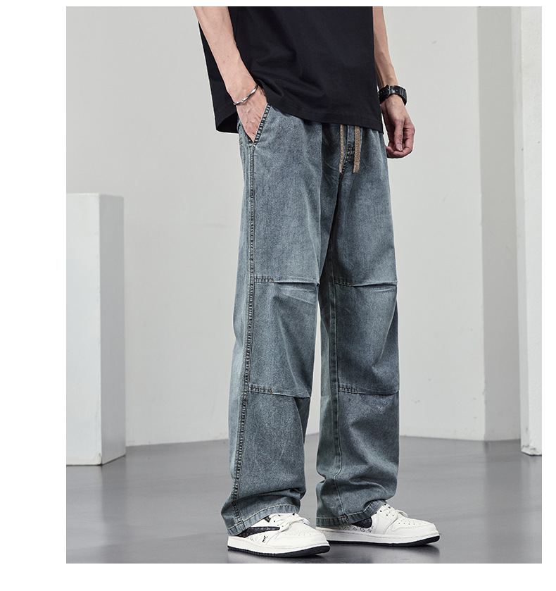 【DYF】大依优型大码男装休闲牛仔裤松紧腰运动宽松直筒休闲风长裤子