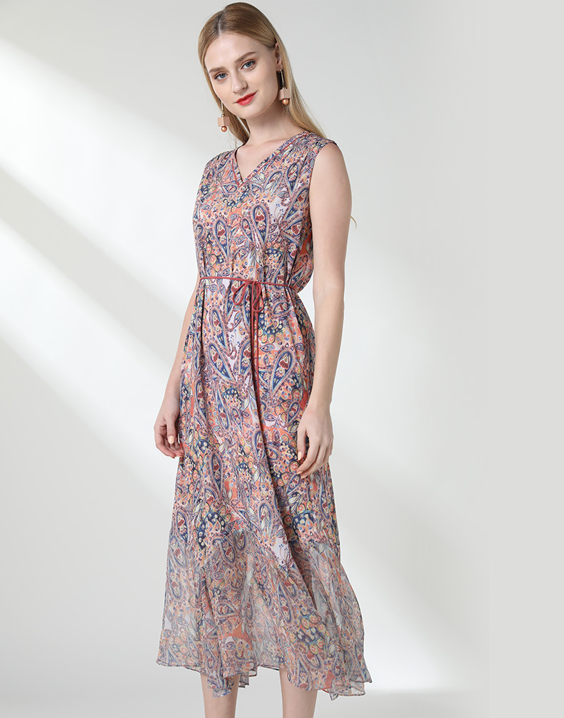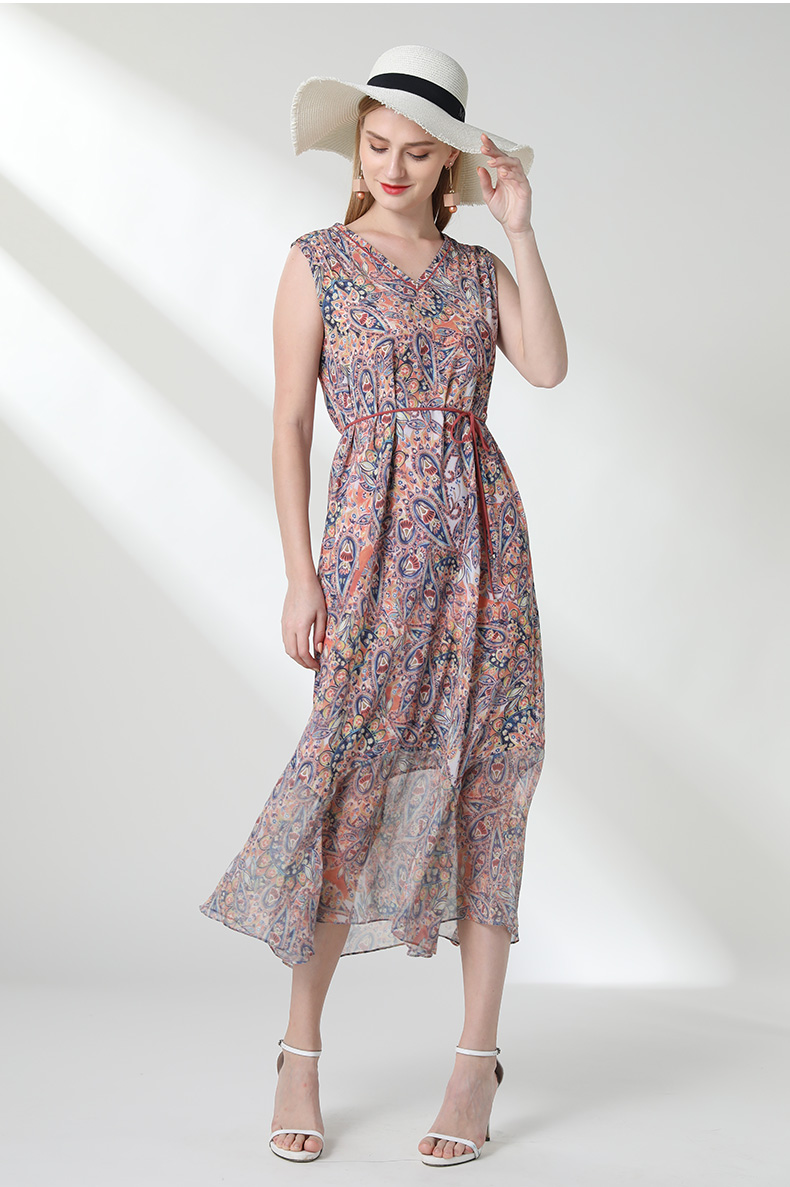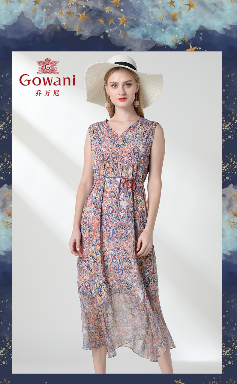 乔万尼夏装真丝印花桑蚕丝修身沙滩裙海边度假连衣裙长款EN2E548