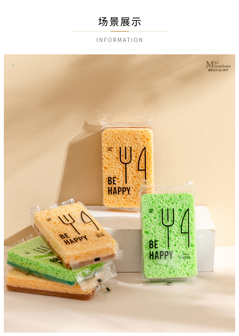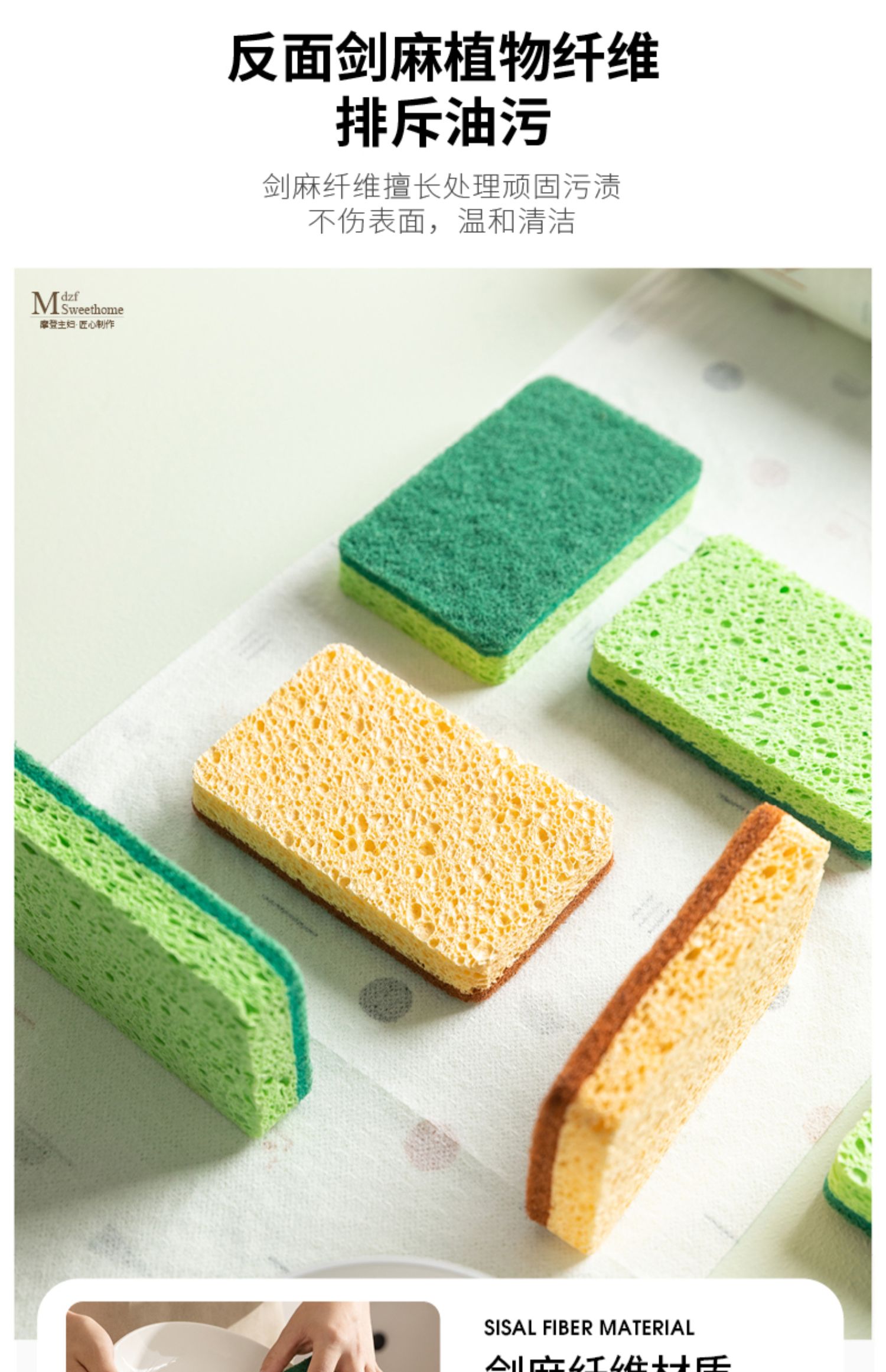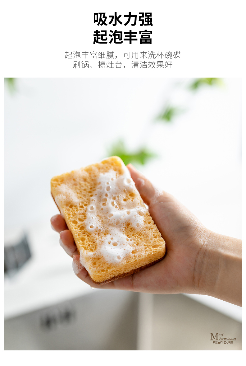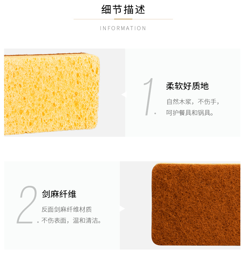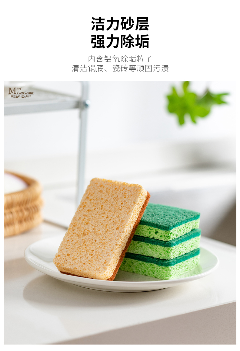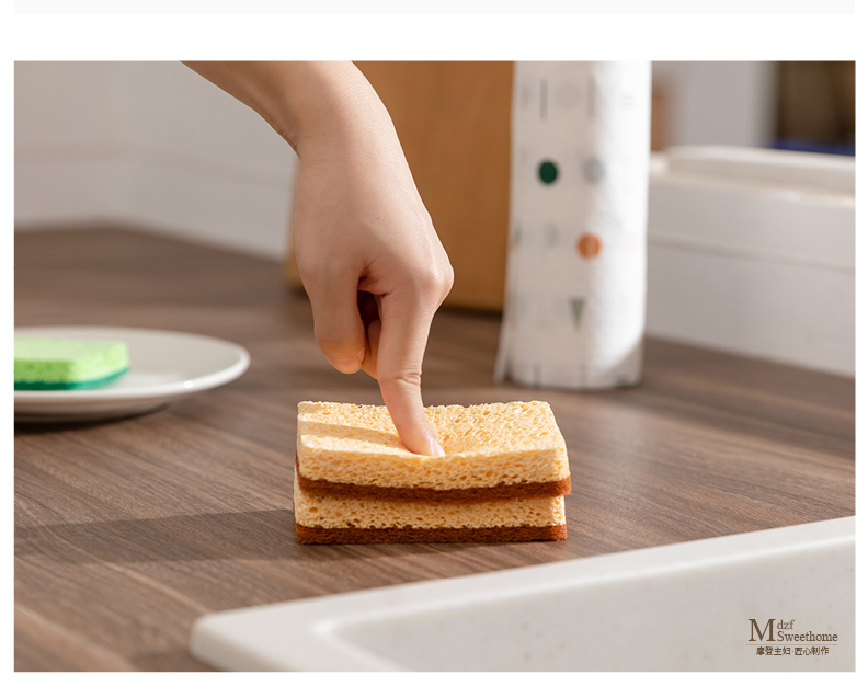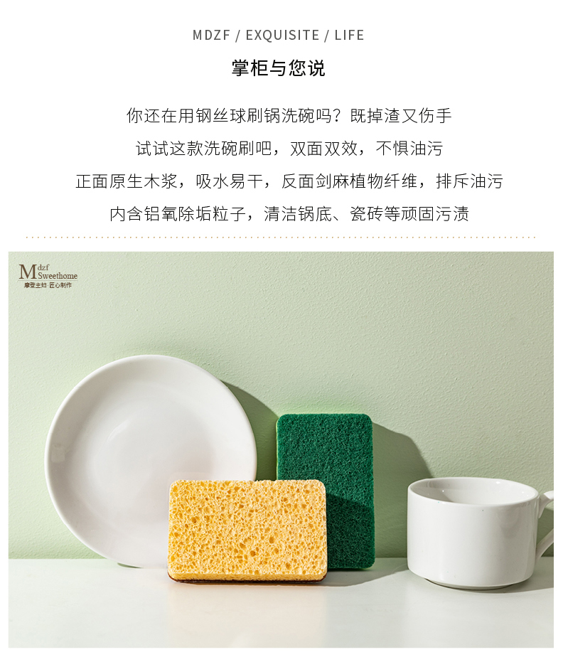 摩登主妇木浆棉洗碗海绵擦剑麻不沾油双面家用抹布厨房神器百洁布