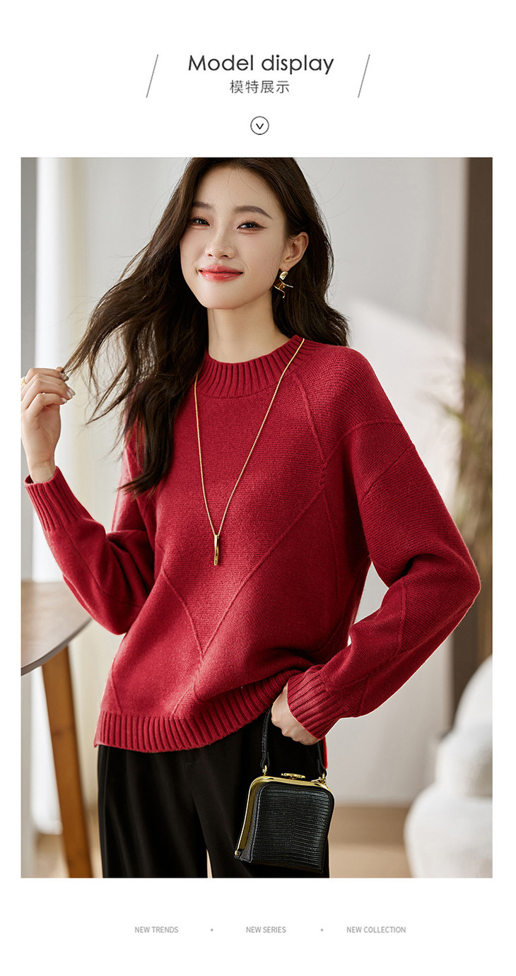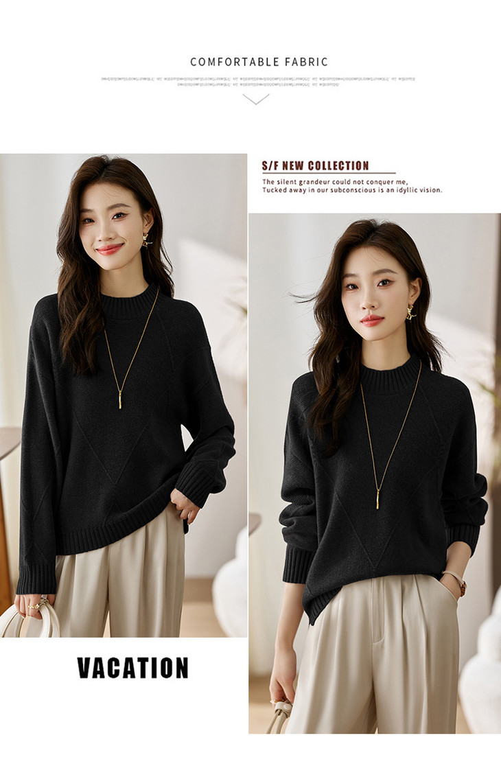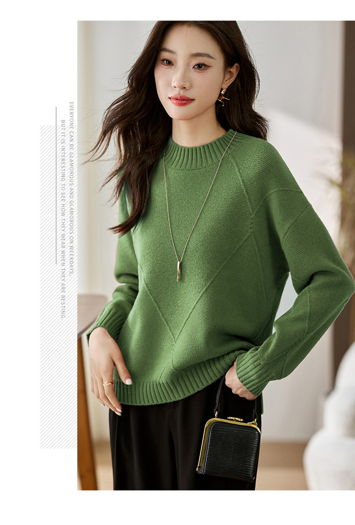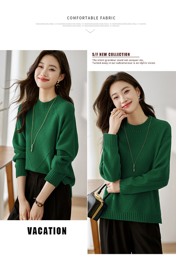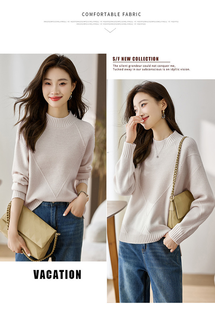 韩版宽松毛衣半高领,简约大气厚款保暖针织衫女上衣CC-LL-1660