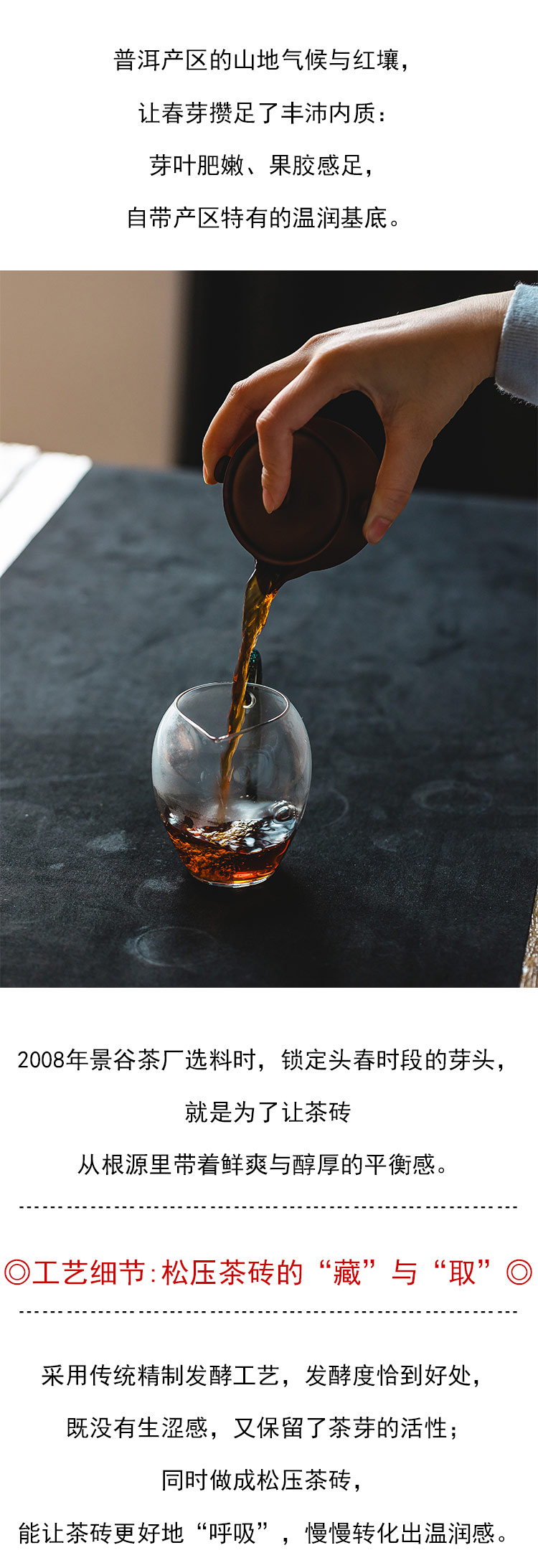 茶香记银生府熟茶砖008云南熟普头春乔木景谷金芽高性价比口粮仓储干净甜醇温润