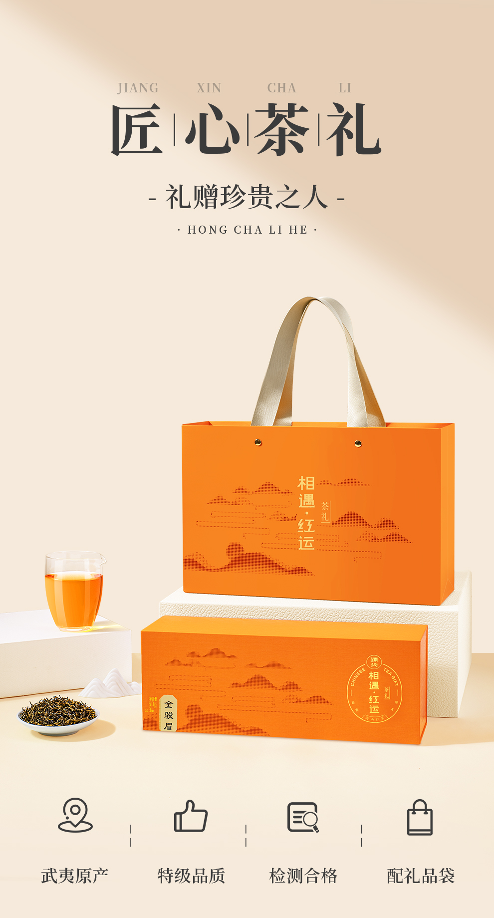 【臻尖-金骏眉相遇红运橙色礼盒】特级金骏眉茶叶礼盒装节日送礼长辈年货礼盒红茶伴手礼官方正品