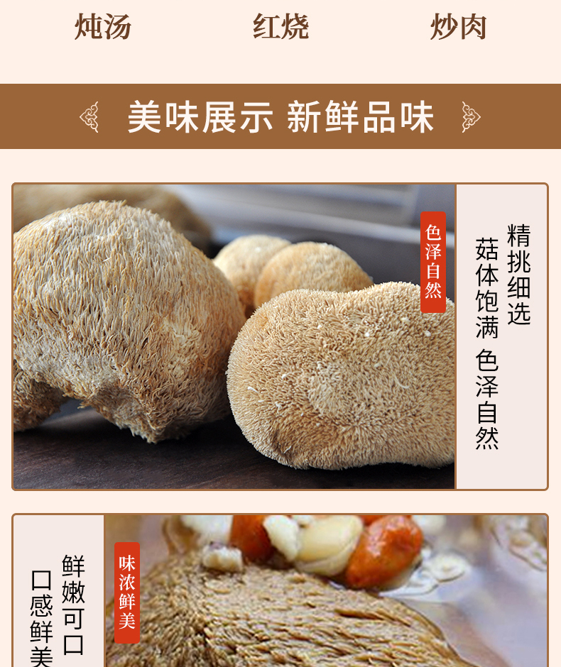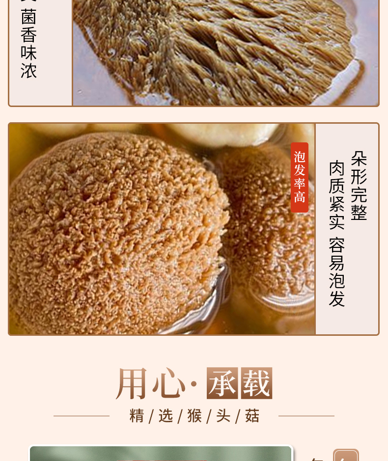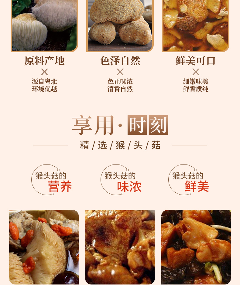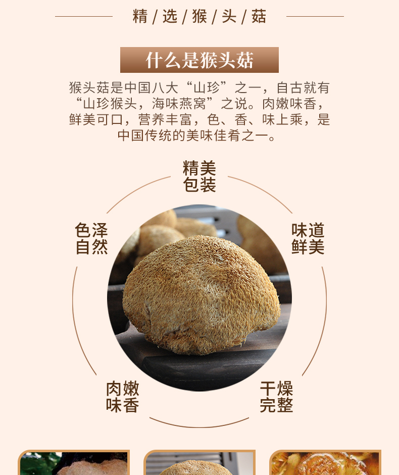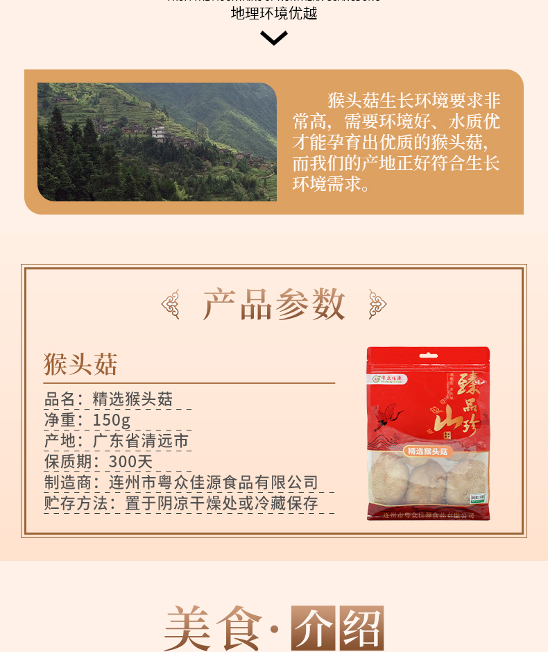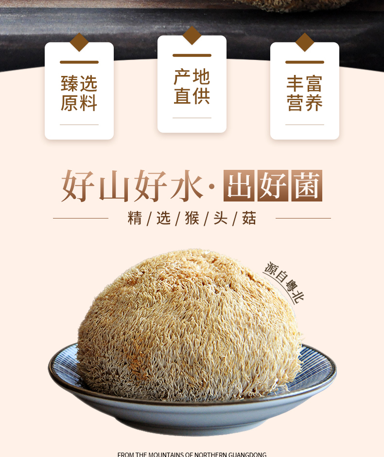连州粤众佳源精选猴头菇八边封自立袋150克食用菌干制品