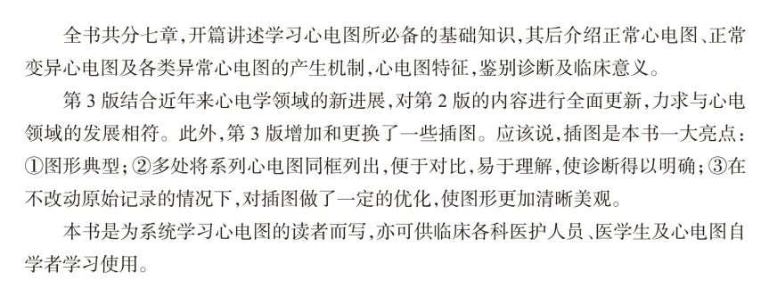 这本书,没有光鲜履历的主编简介,没有豪华阵容的编写团队,也算不上是一部心电图百科全书。所有的,只是字里行间素净无华的图文表达,以及摒弃了刻意炫技的排版装帧,将一份质朴与真诚,悄然藏进了纸页之中。