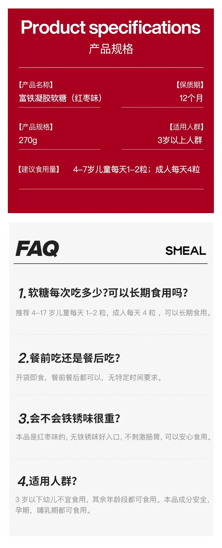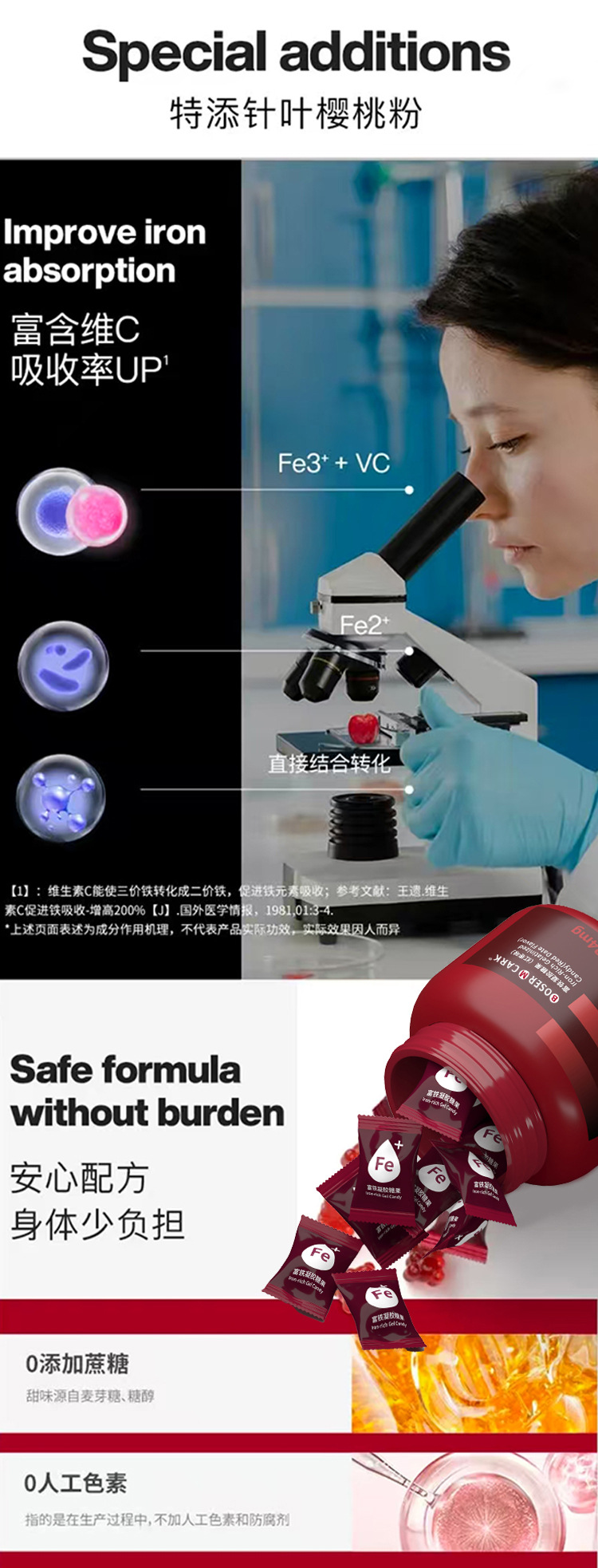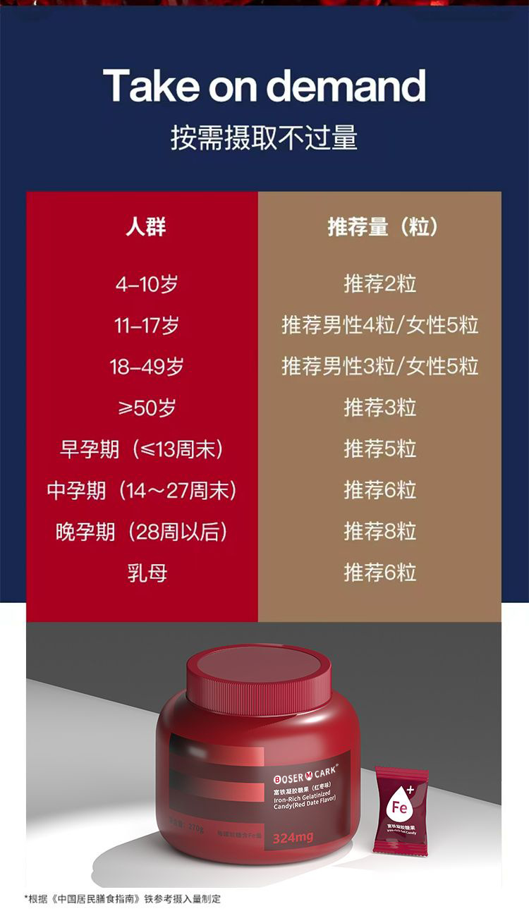 【酸甜适口!高含铁量】BoserMcark富铁凝胶软糖补充铁元素大罐装红枣味软糖含铁量324mg。xb