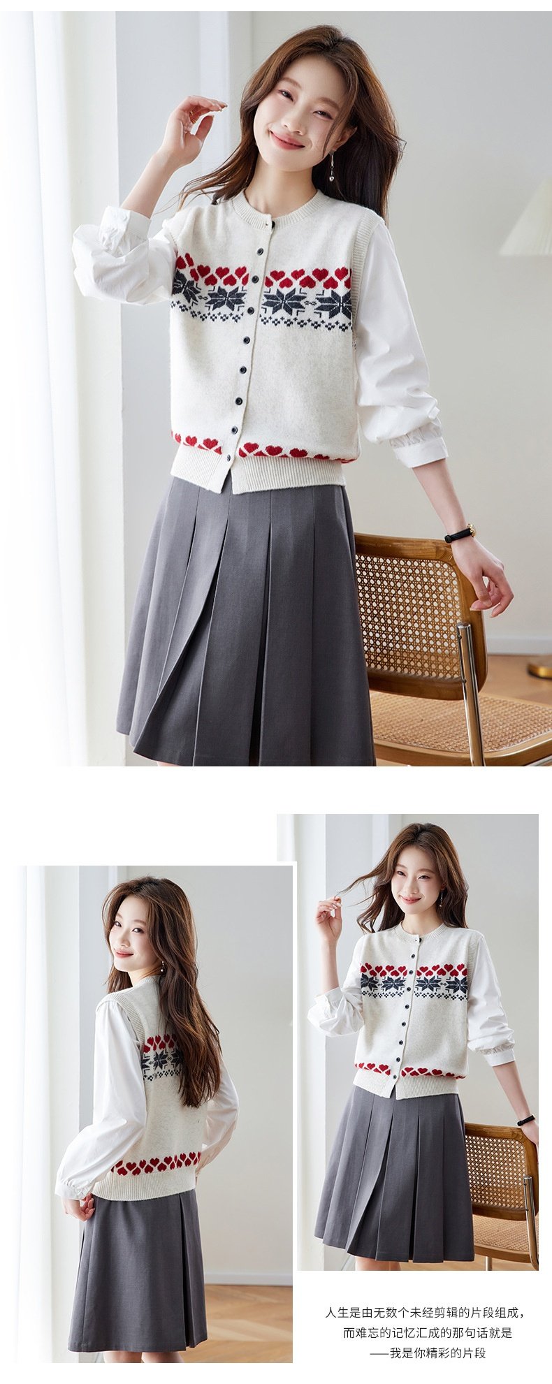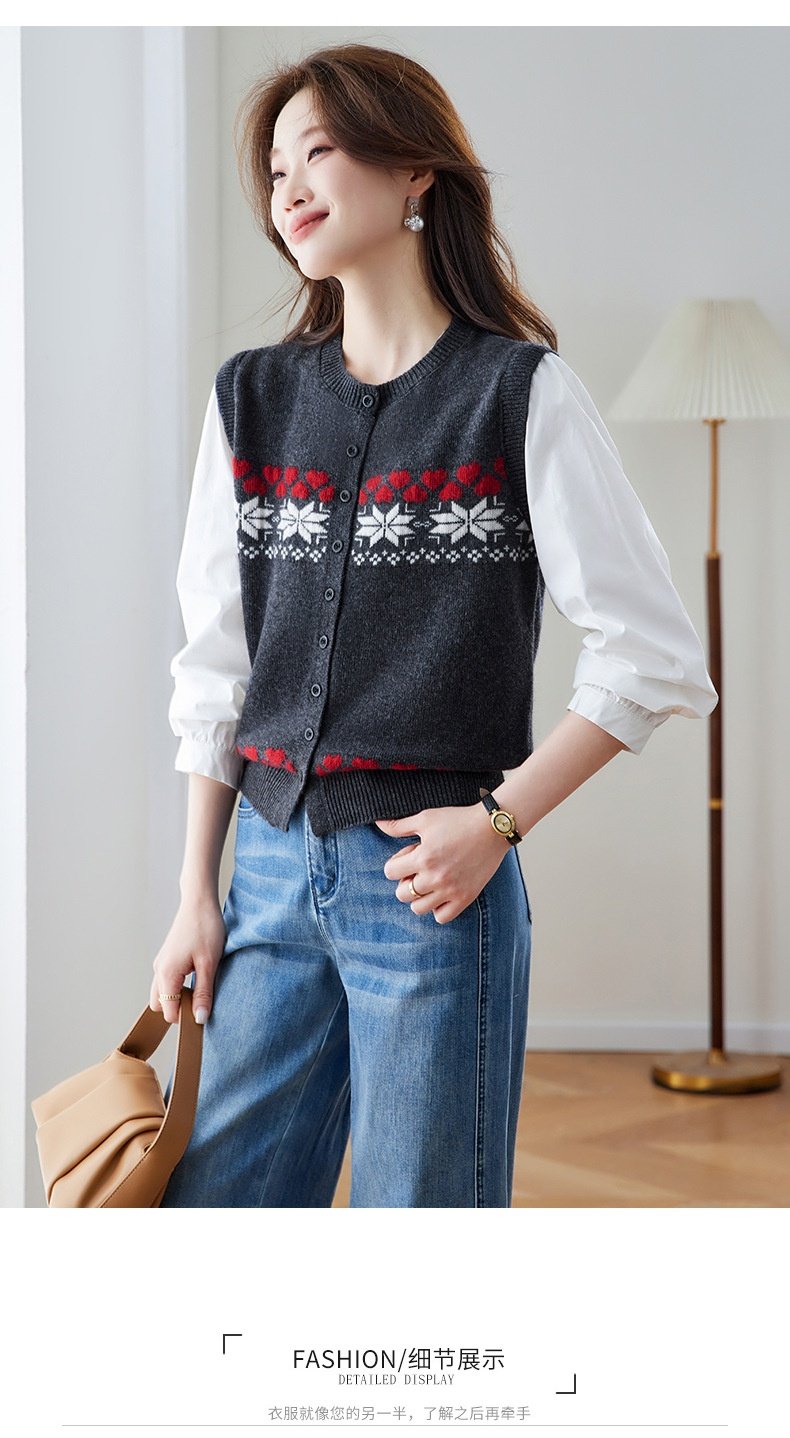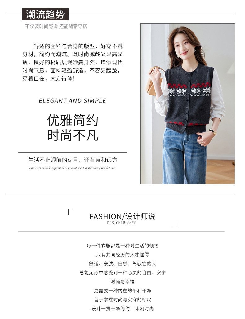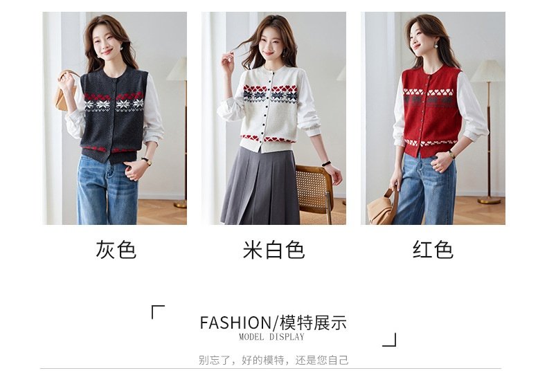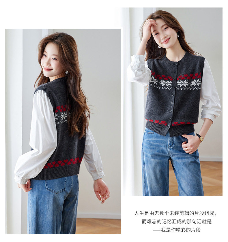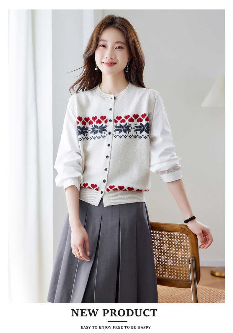 「自」全新升级【铂金会员183/天猫249/差价66】(03853)洛诗琳复古提花拼接衬衫2026春季新款假两件针织开衫