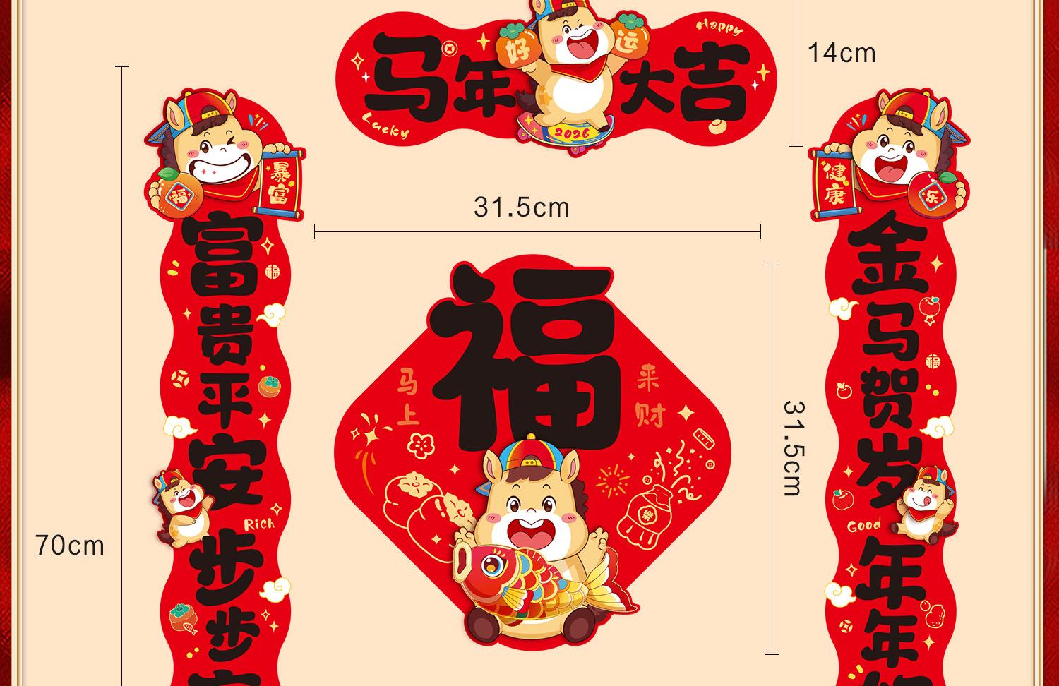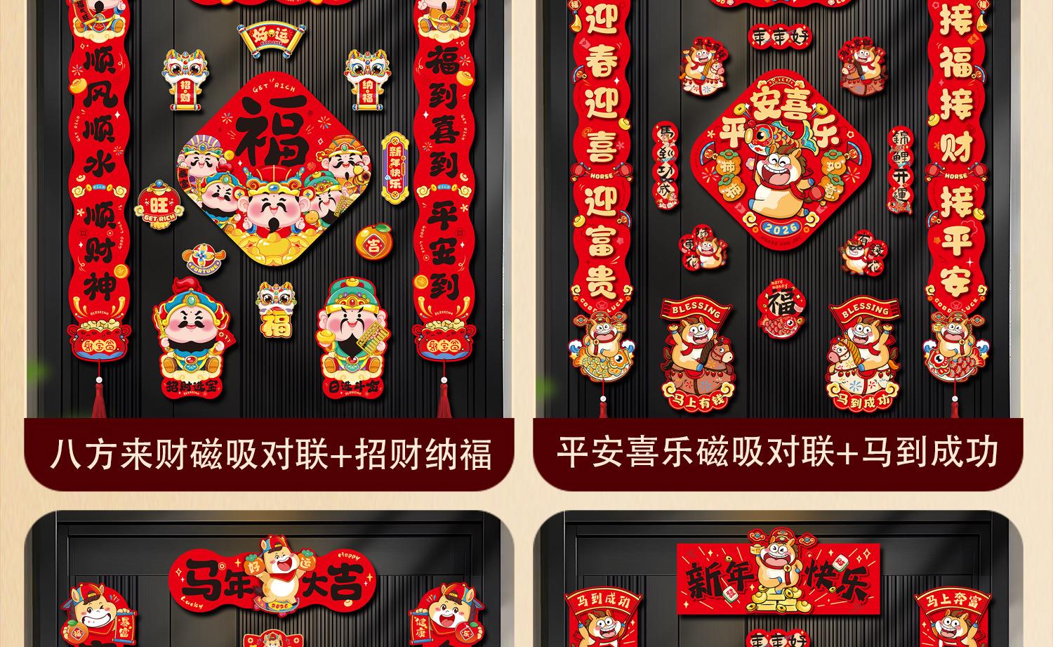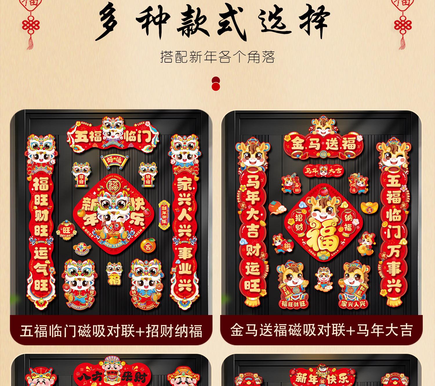 马年磁吸对联批货2026新款春节过年入户门福字贴年货装饰新年春联