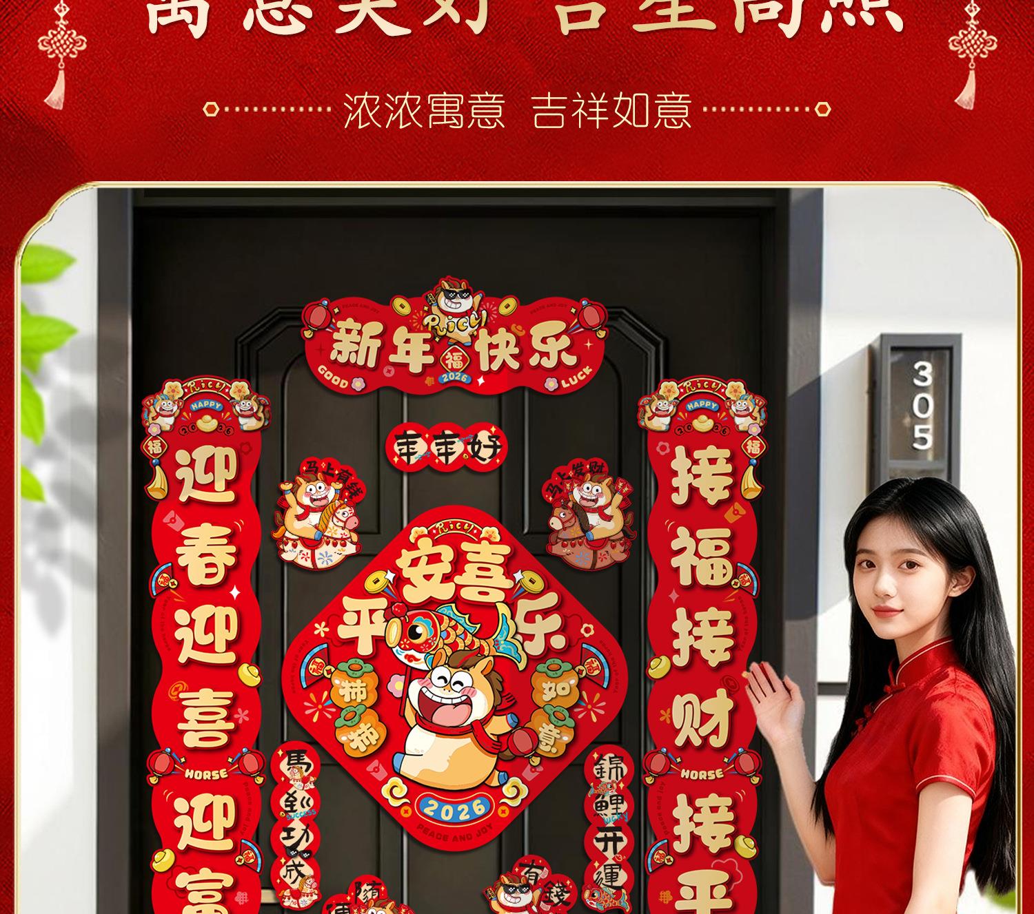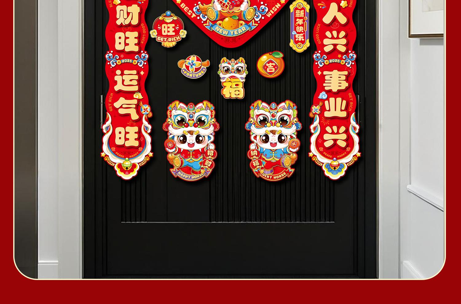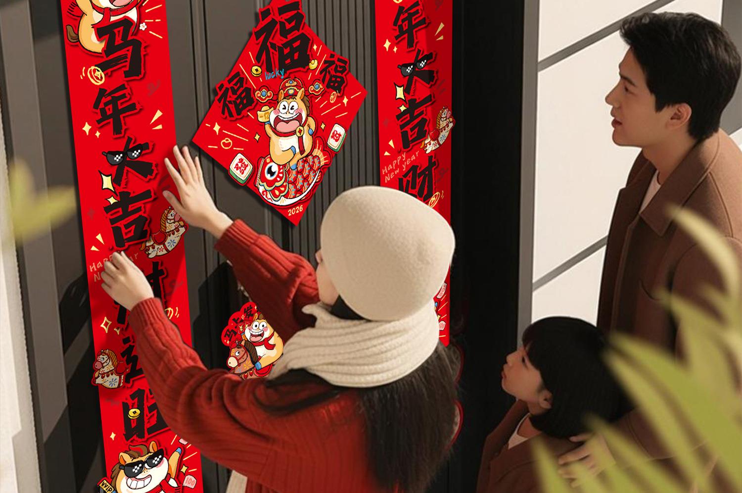 马年磁吸对联批货2026新款春节过年入户门福字贴年货装饰新年春联