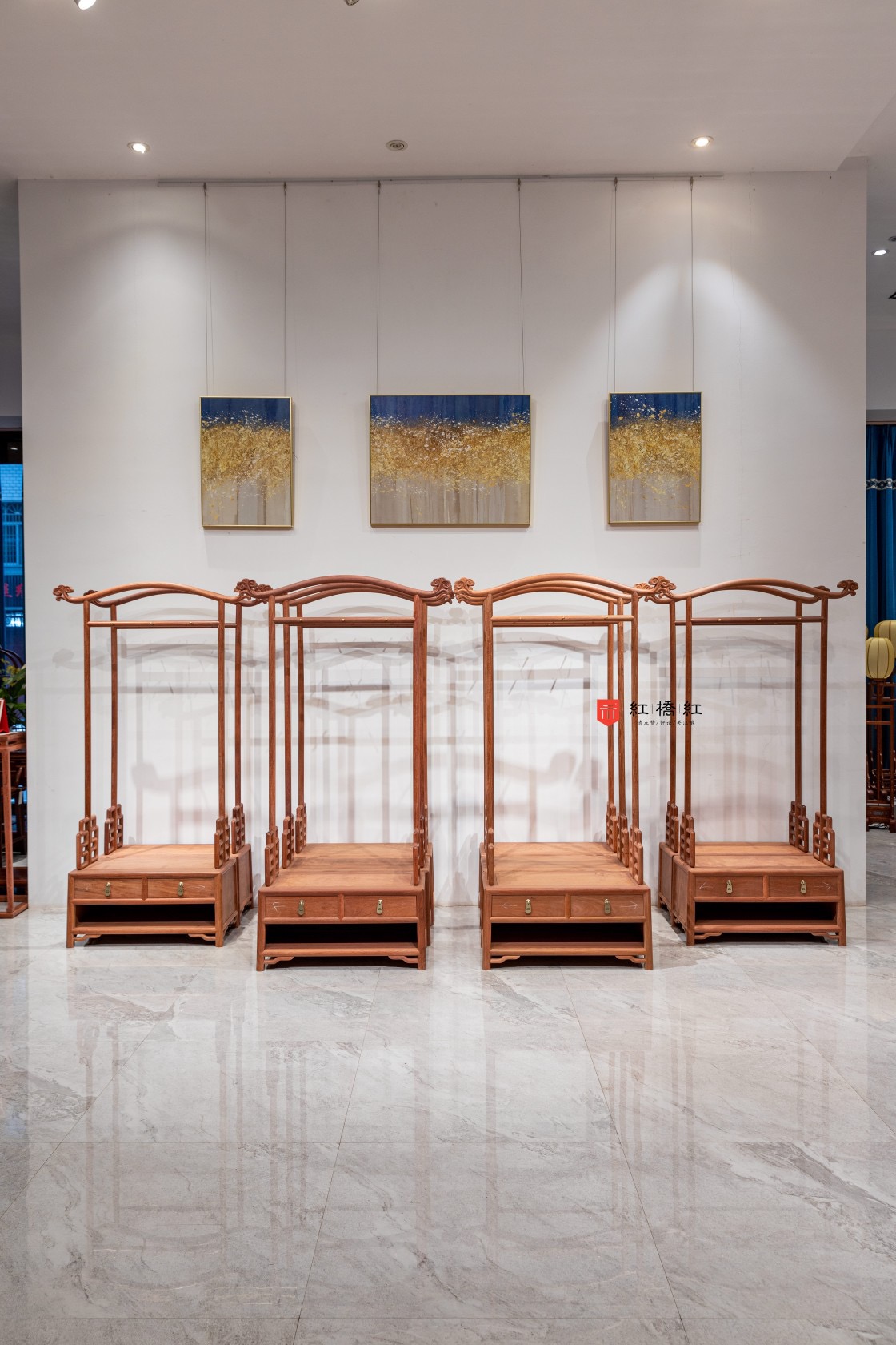 红桥红  家具严选  缅甸花梨(大果紫檀)【98 双抽屉如意衣帽架】 商品图1