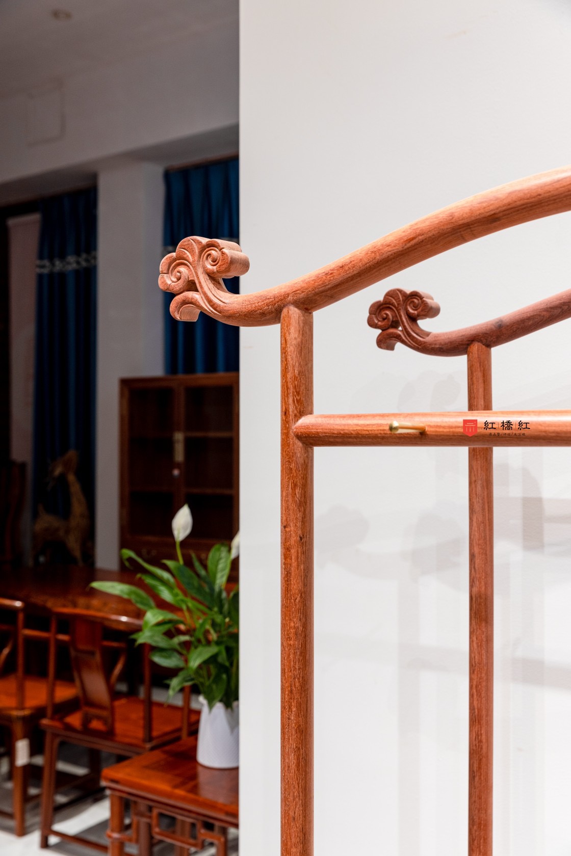 红桥红  家具严选  缅甸花梨(大果紫檀)【98 双抽屉如意衣帽架】 商品图3