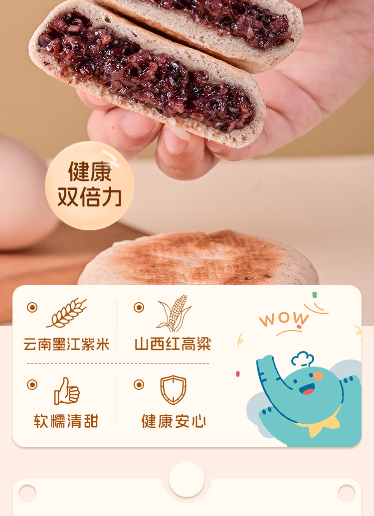 紫米高粱饼丨60g*10个/袋 山西红高粱面皮 墨江紫米内馅 软糯清甜 云南特色粗粮早餐