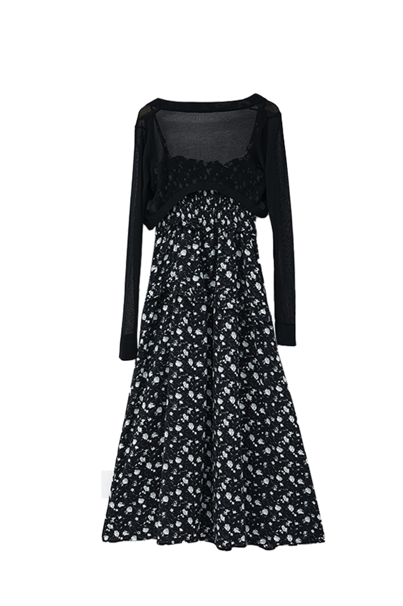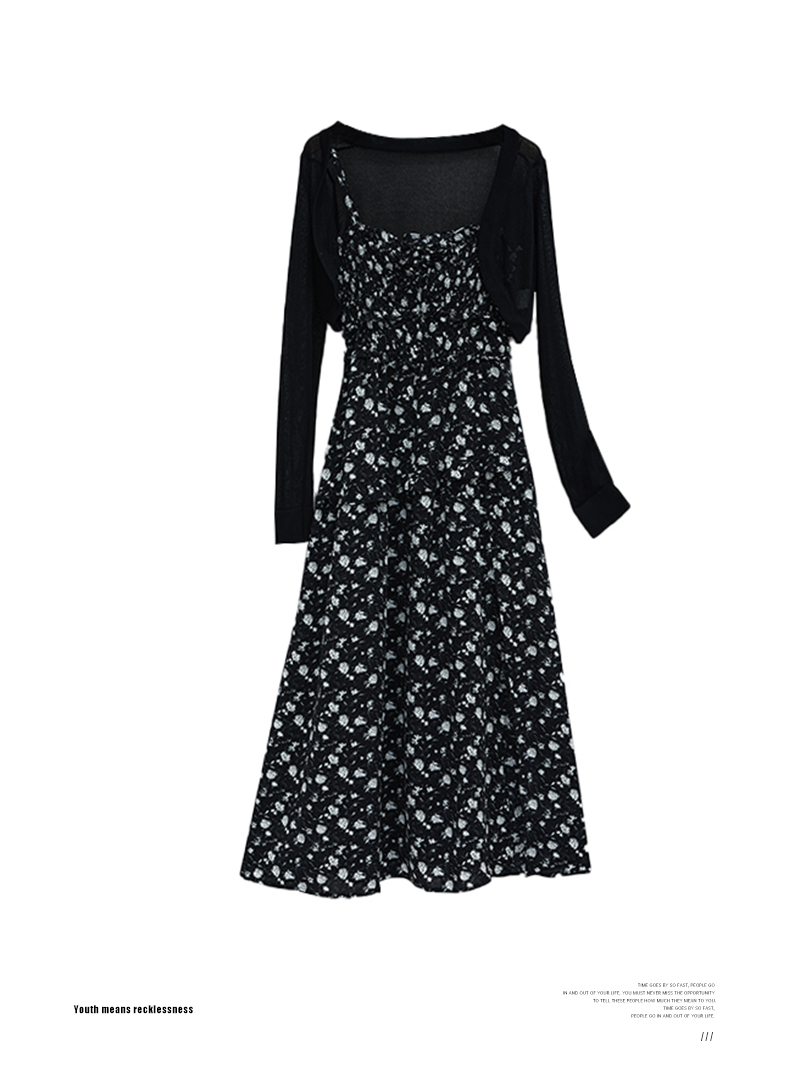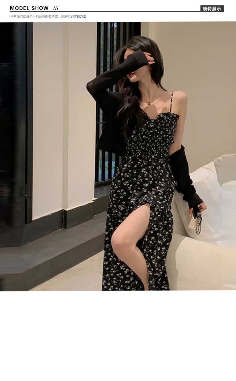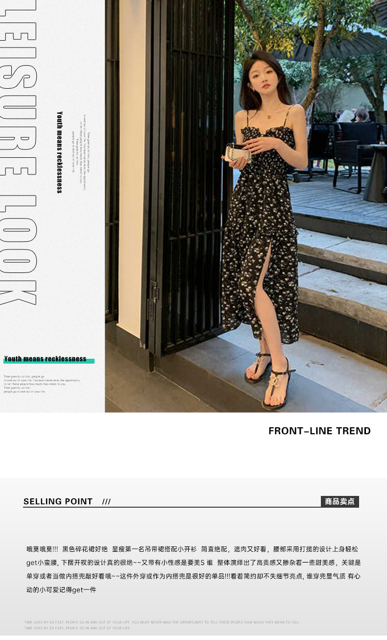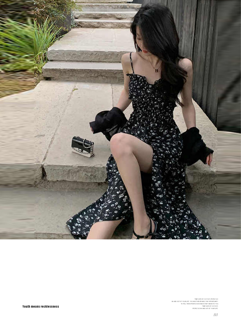 罗宾汉【风感波粒】薄荷曼波时尚气质吊带碎花开叉连衣裙-R241Q6021