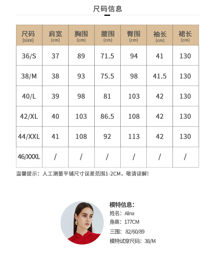 | 号型 | 裙长/cm | 肩宽/cm | 胸围/cm | 腰围/cm | 袖长/cm | 臀围/cm | 脚围/cm |