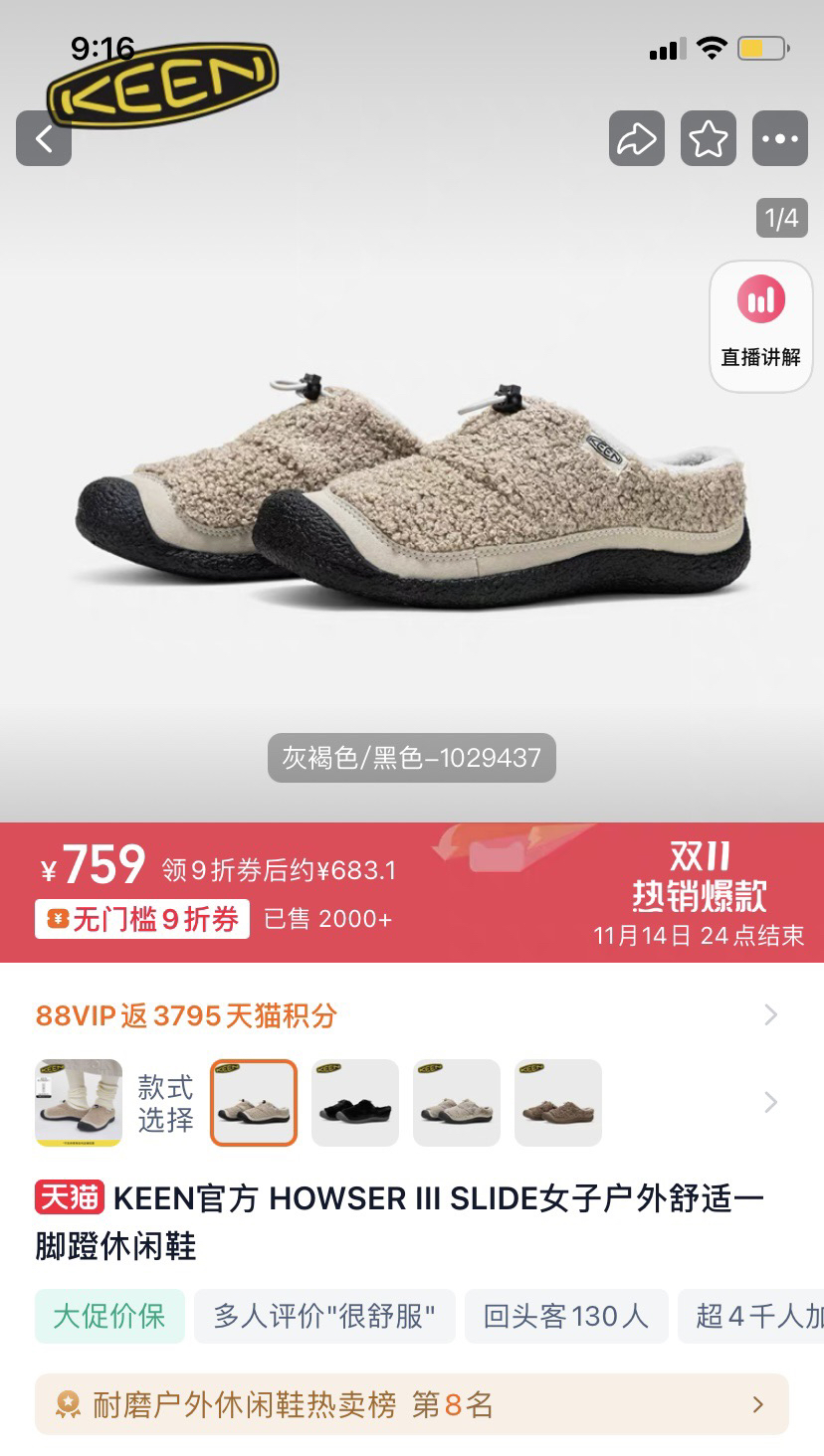 🦋自留款!K*EEN~ HOWSER III SLIDE 户外舒适一脚蹬 毛毛鞋
