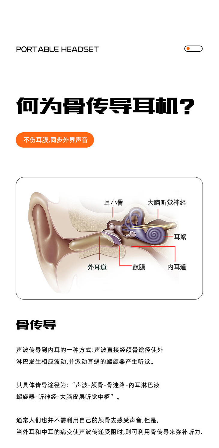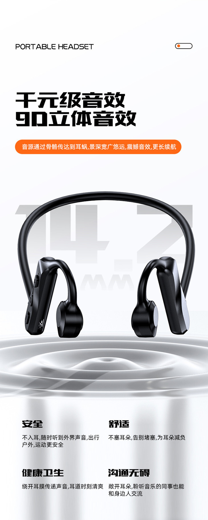 骨传导概念蓝牙耳机不入耳无线运动佩戴舒适防水耳机-优选好物W仓