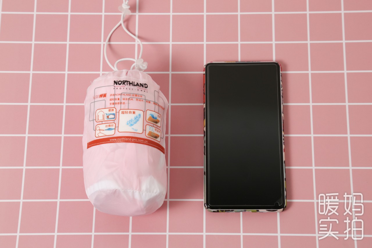 而且整件衣服可以卷成iPhone X大一点点,装进附赠的收纳袋里,丝毫不占地方。