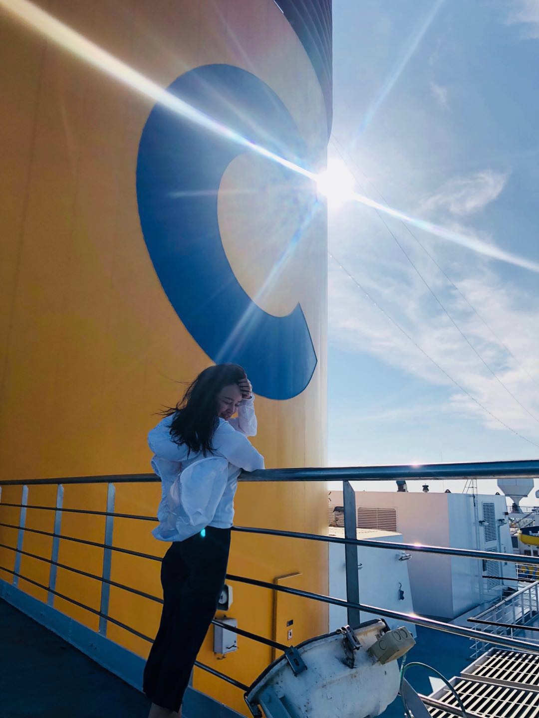 ▽带暖暖去游轮时,甲板的风很大,一件防晒效果好,抗风的防晒衣是必备!