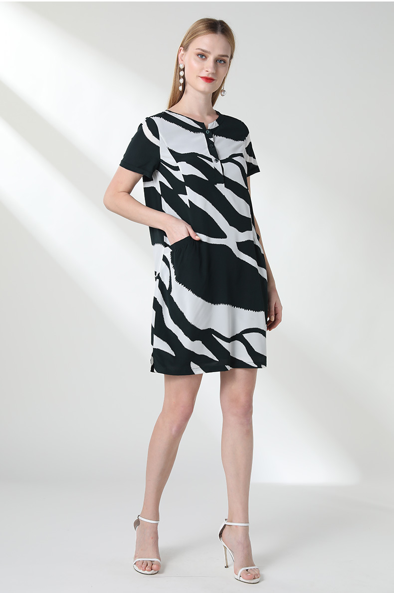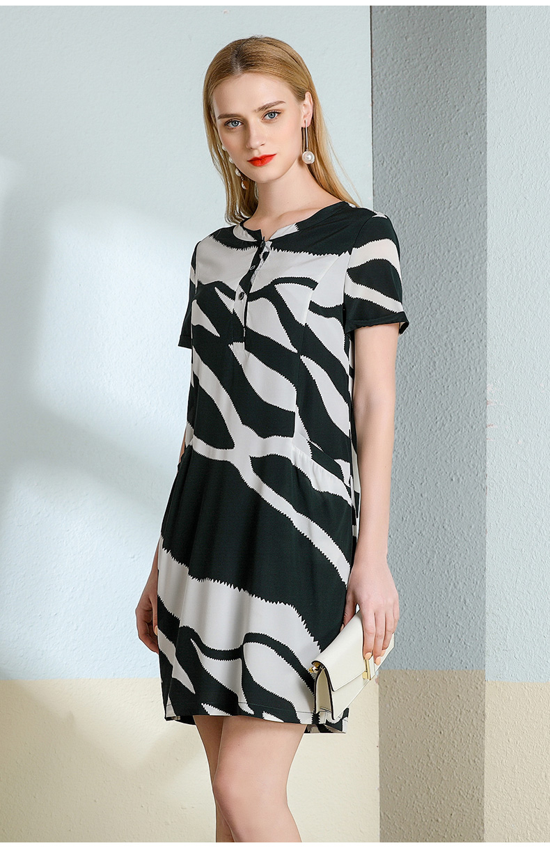 乔万尼夏真丝流行简约设计感宽松条纹桑蚕丝连衣裙女中长EN2E509