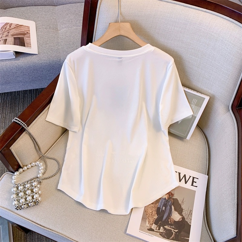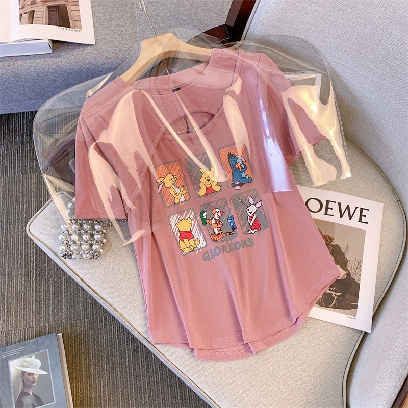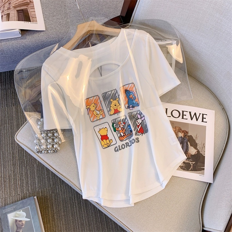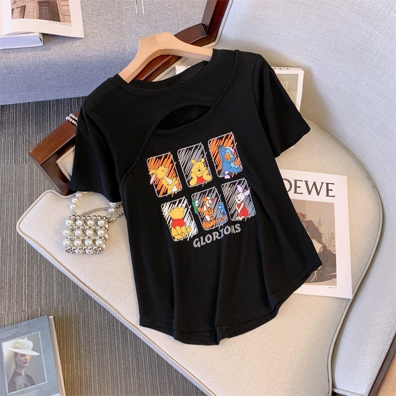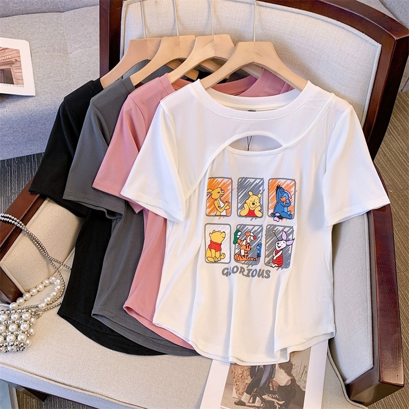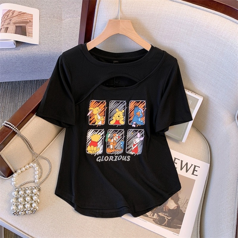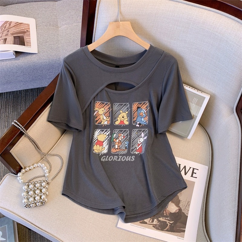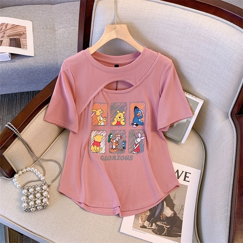 丁摩 大码女装夏季新款正肩短袖t恤女胖mm遮肉显瘦镂空设计感上衣5ZF-D18