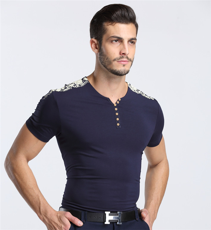 恒源祥男士夏季新款休闲V领短袖T恤 01166013