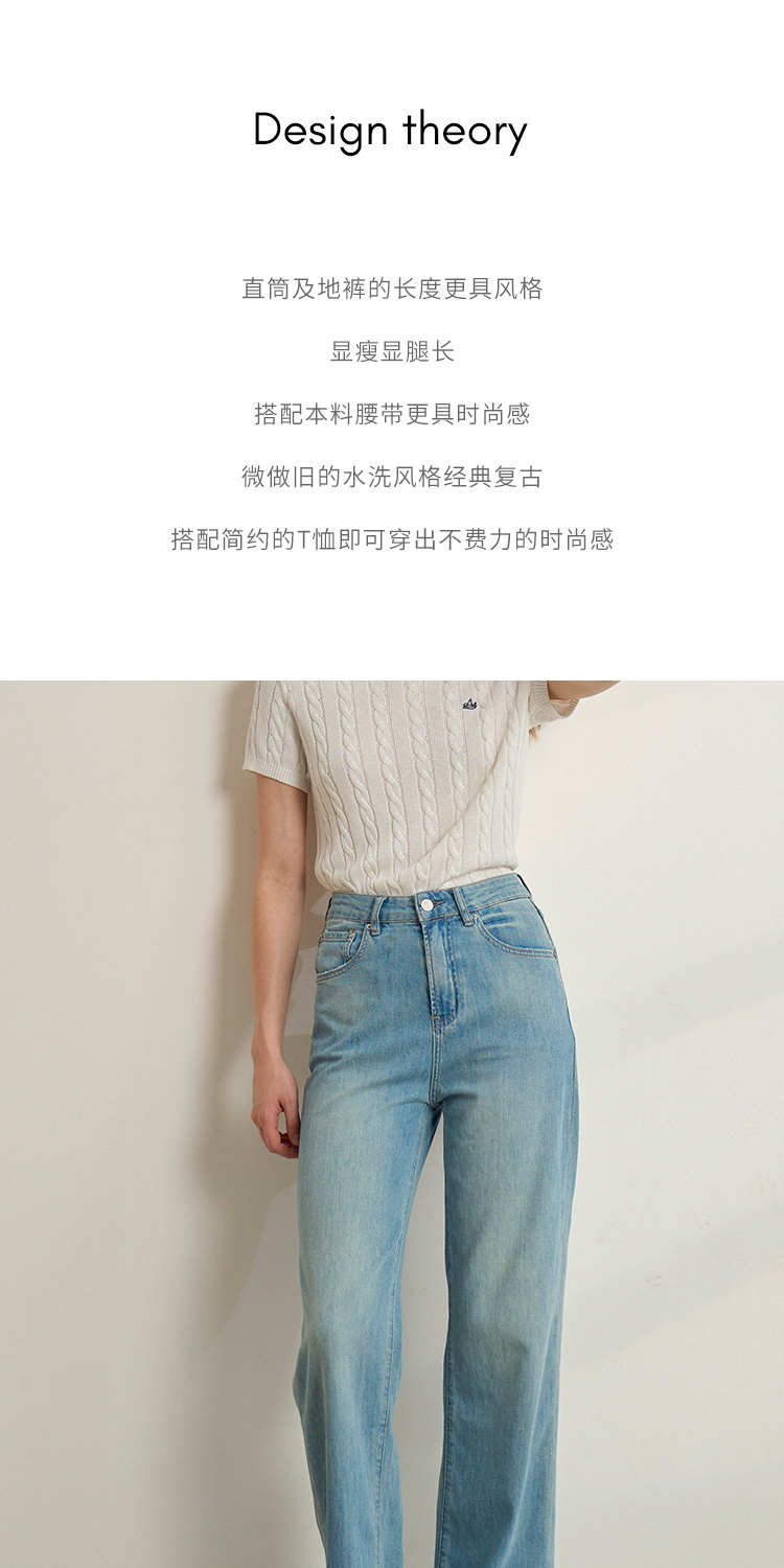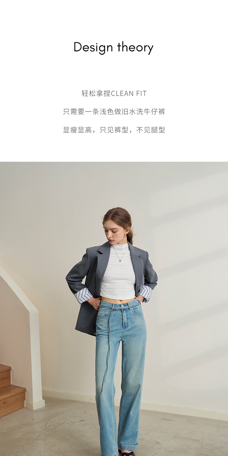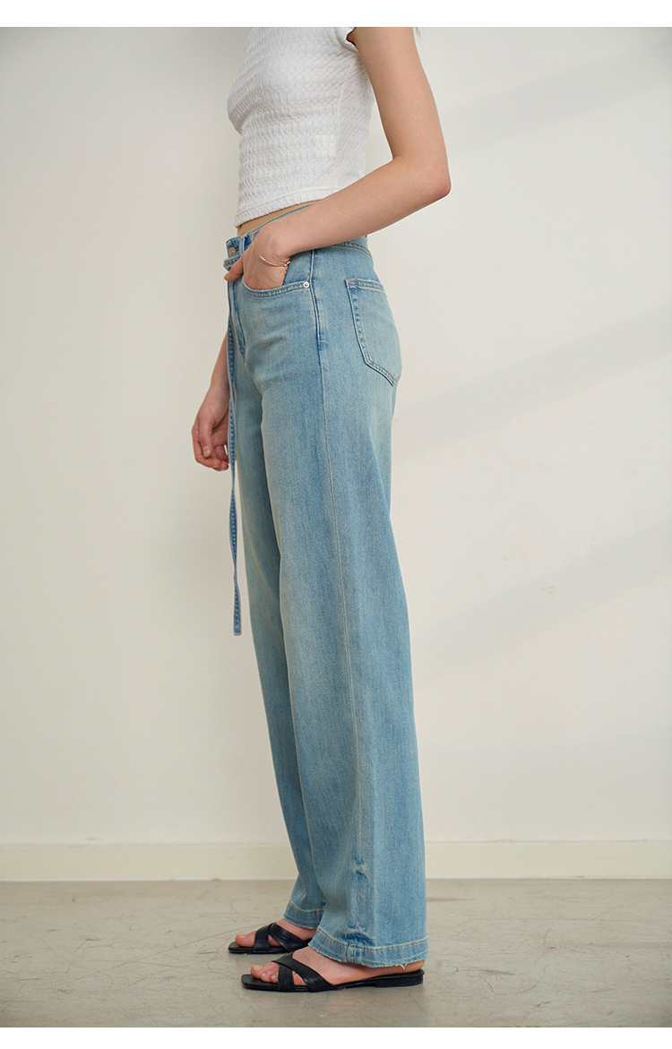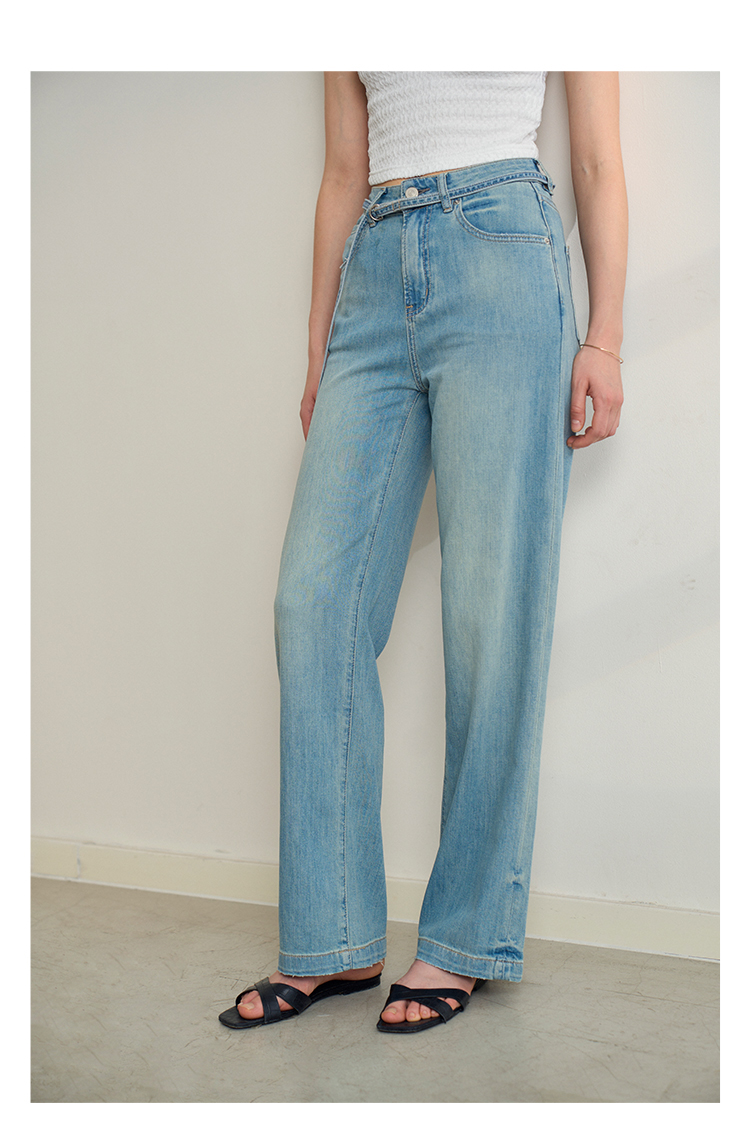 HeyDress复古牛仔裤女春夏高腰系带宽松显瘦阔腿裤百搭长款裤子