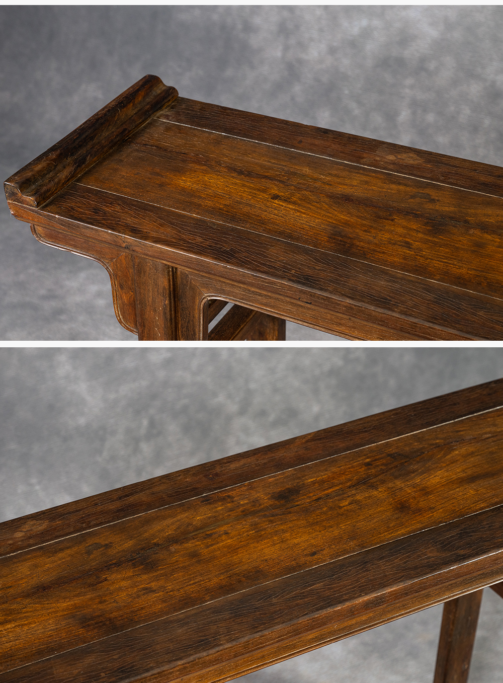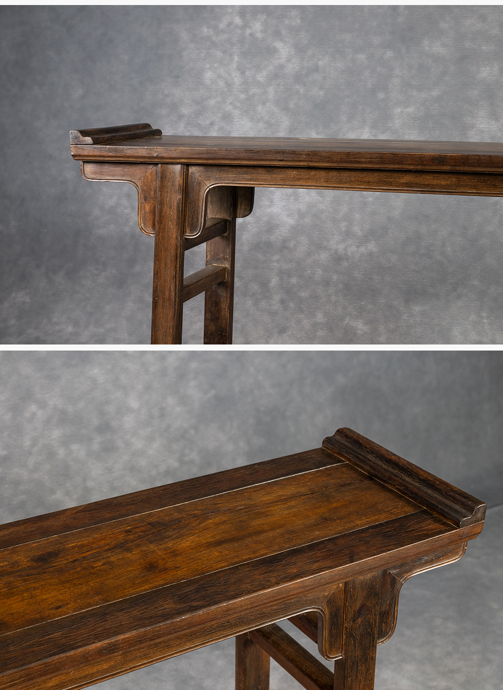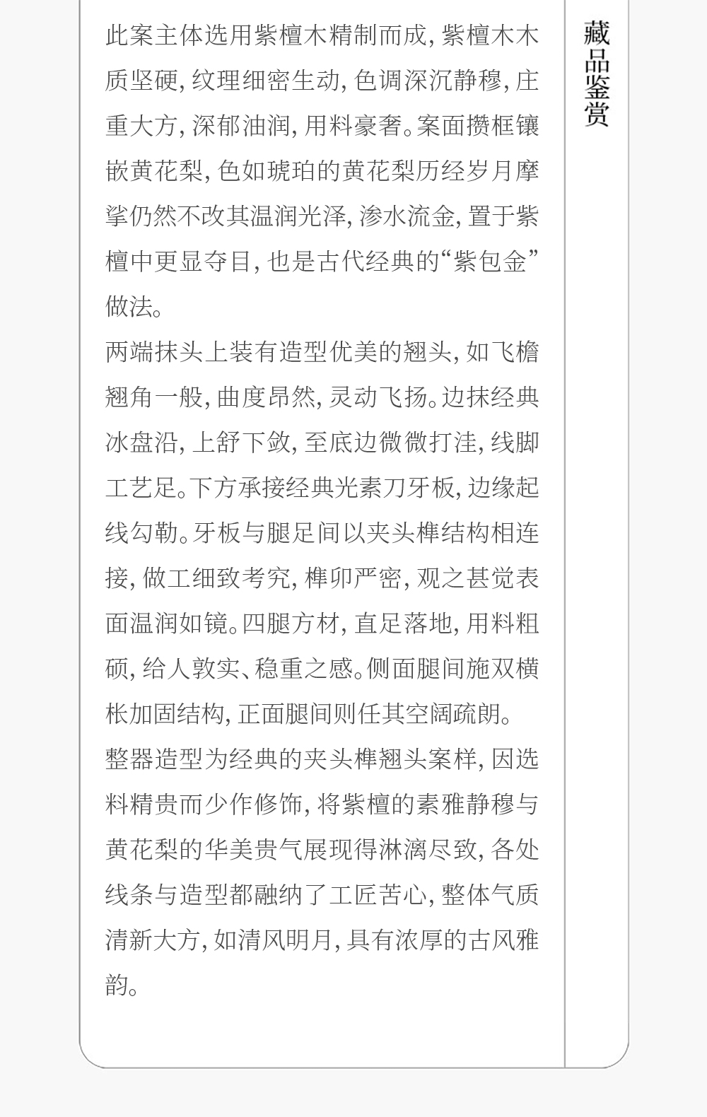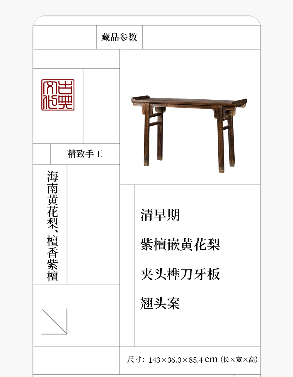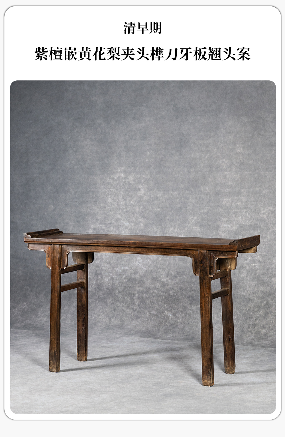 清早期 紫檀嵌黄花梨夹头榫刀牙板翘头案