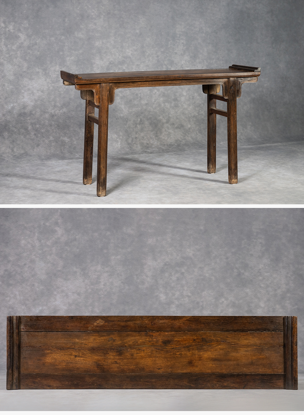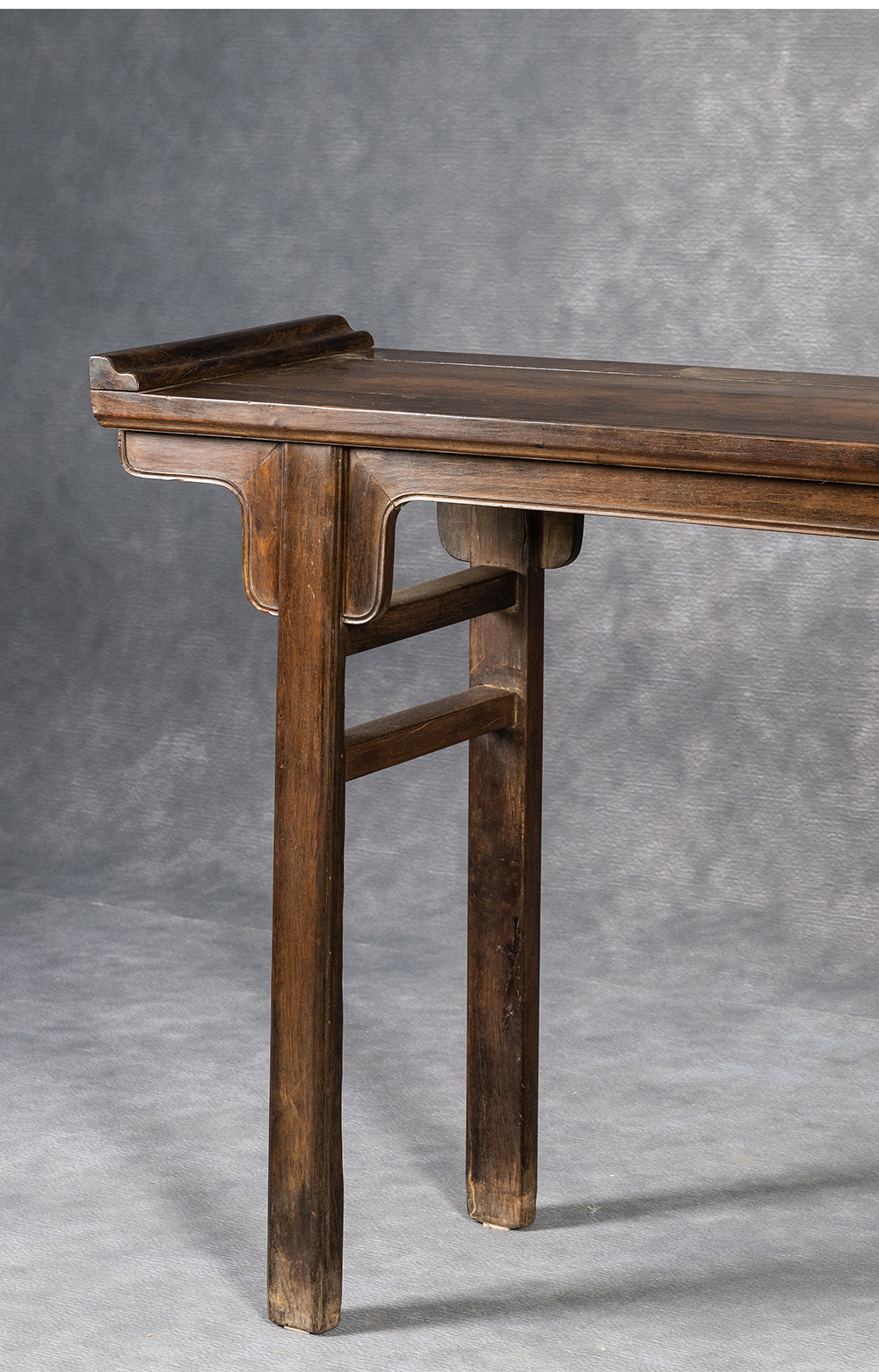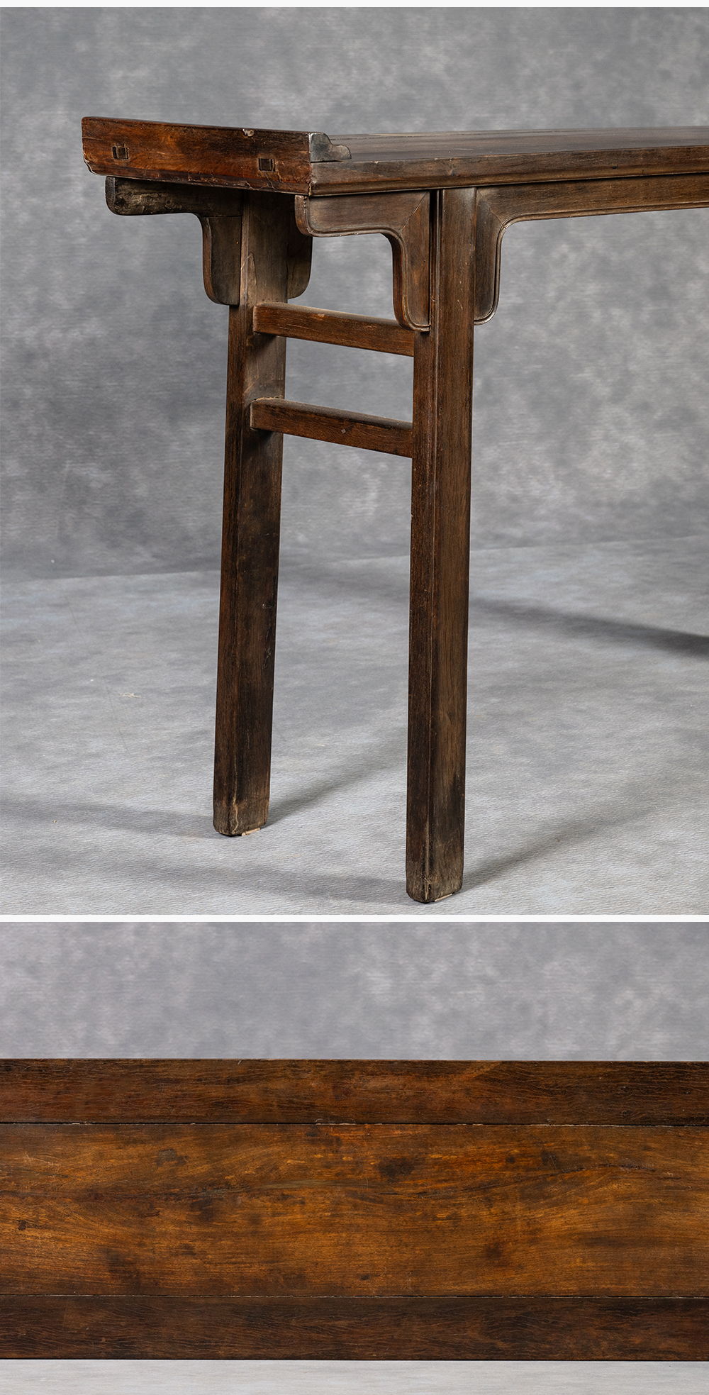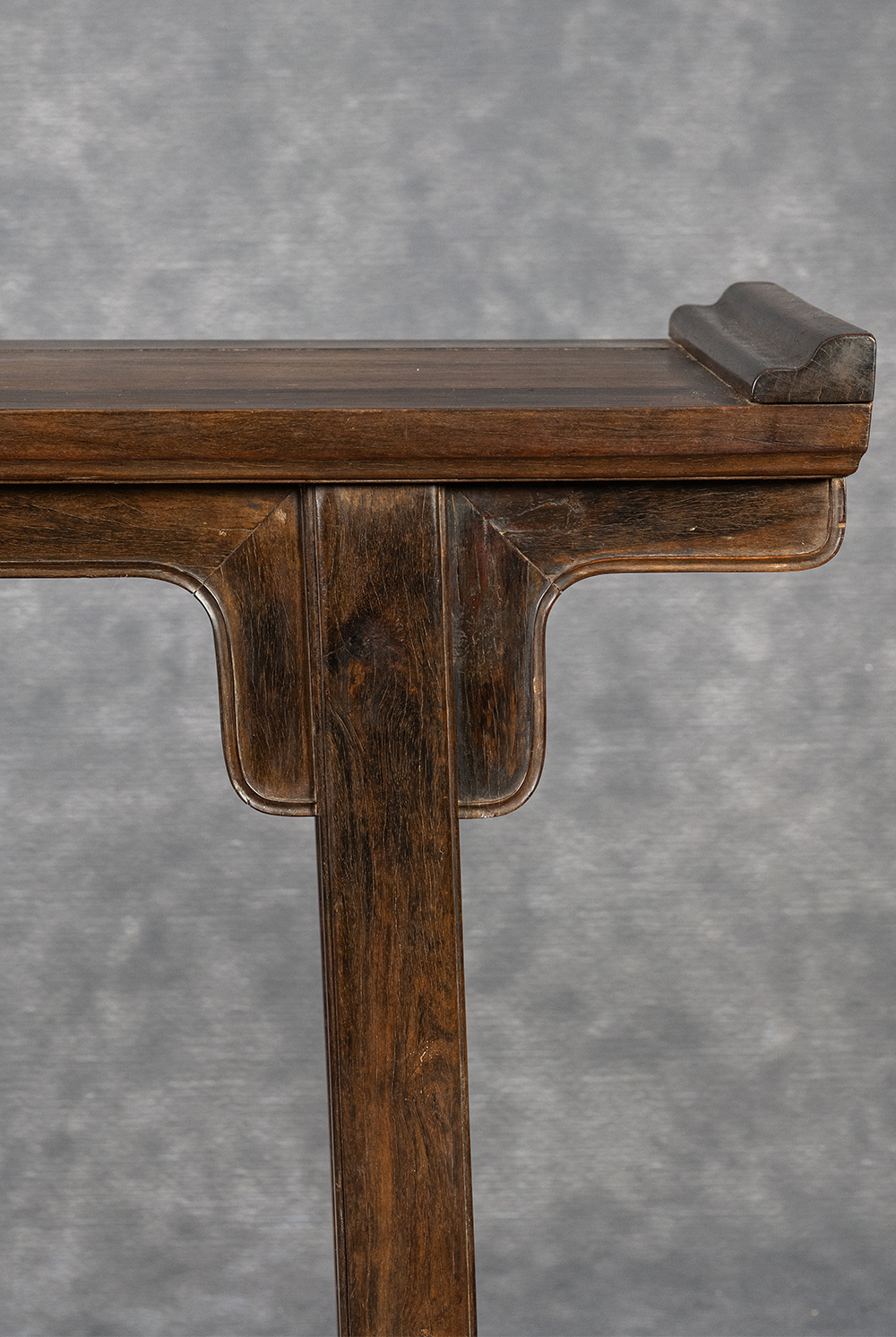 清早期 紫檀嵌黄花梨夹头榫刀牙板翘头案