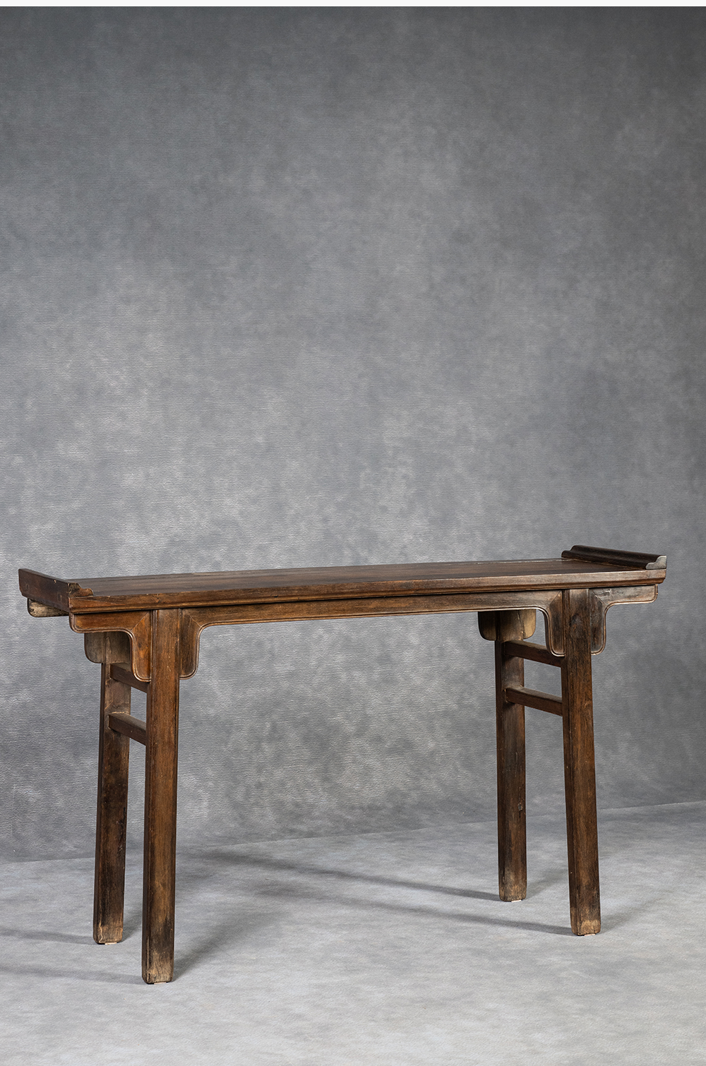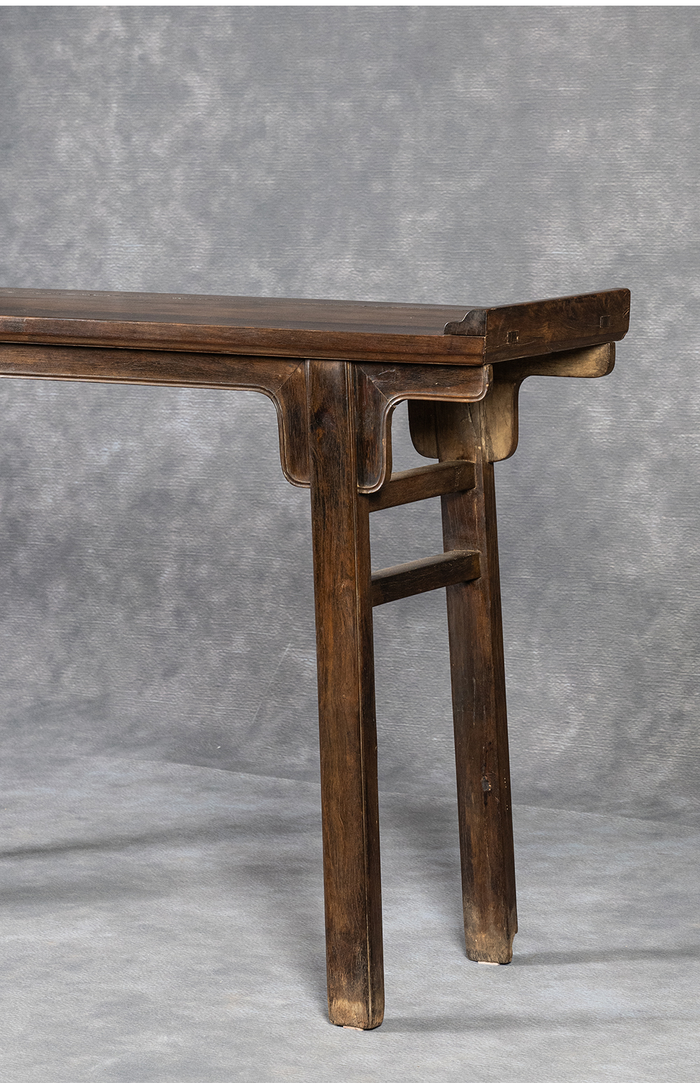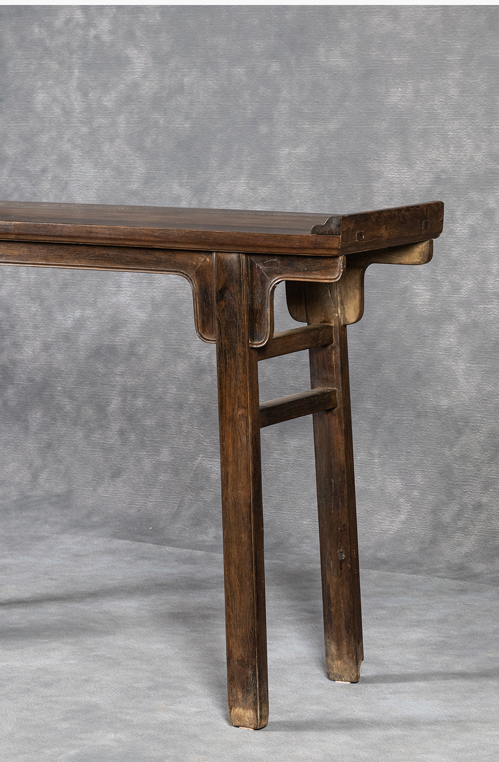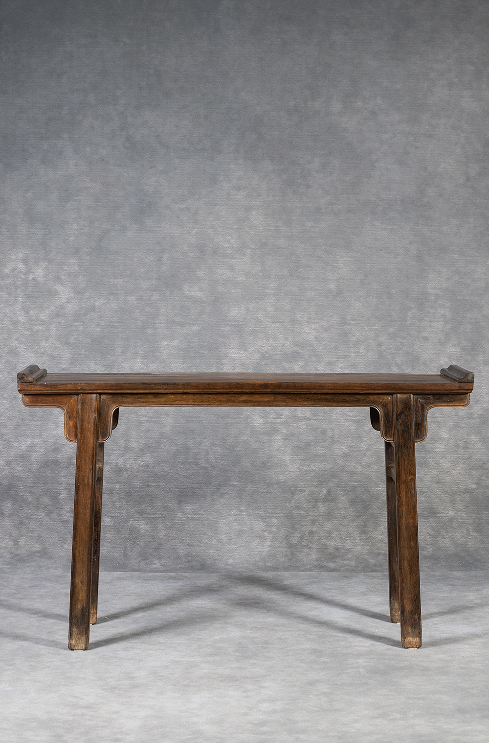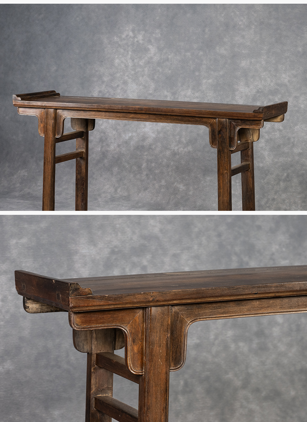 清早期 紫檀嵌黄花梨夹头榫刀牙板翘头案