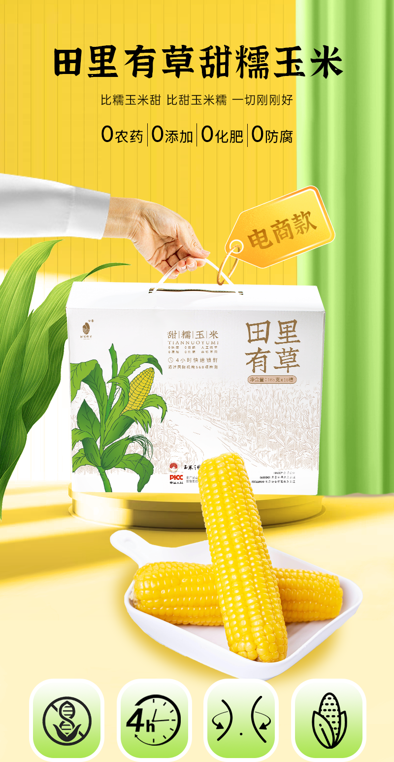 基地直发-田里有草,家庭装10根(165g×10根),甜糯玉米!
